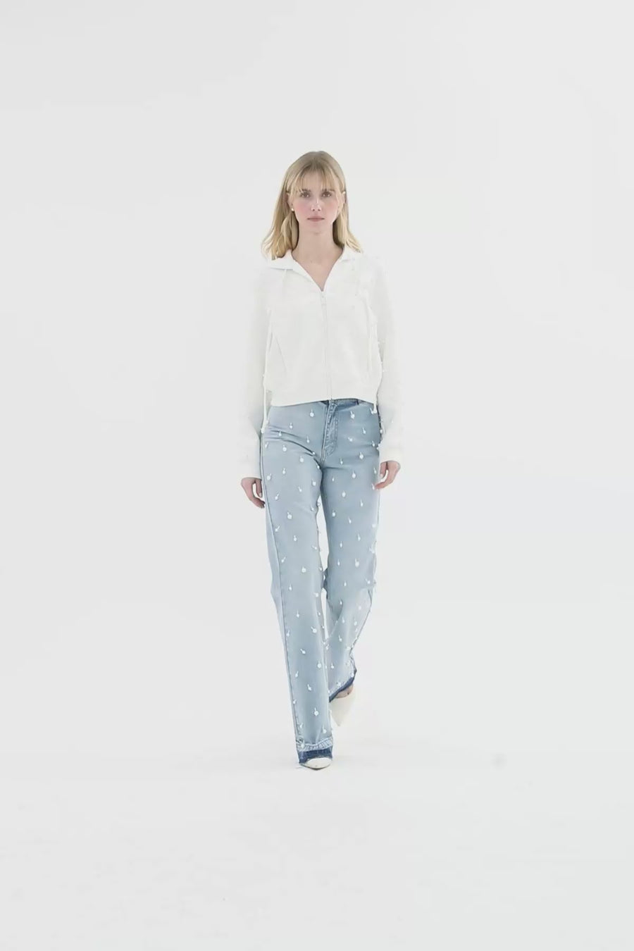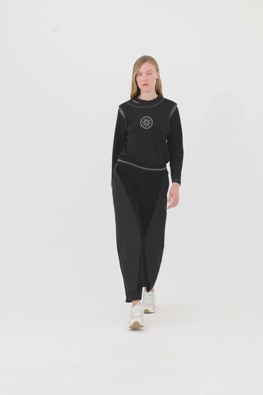 Ecru Stripe-Detail Sleeve Sweatshirt