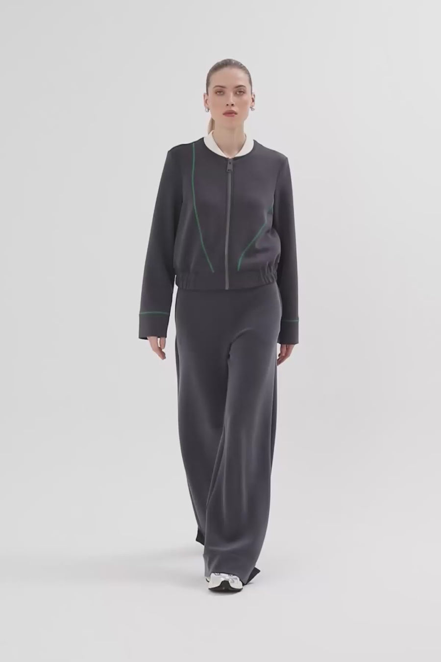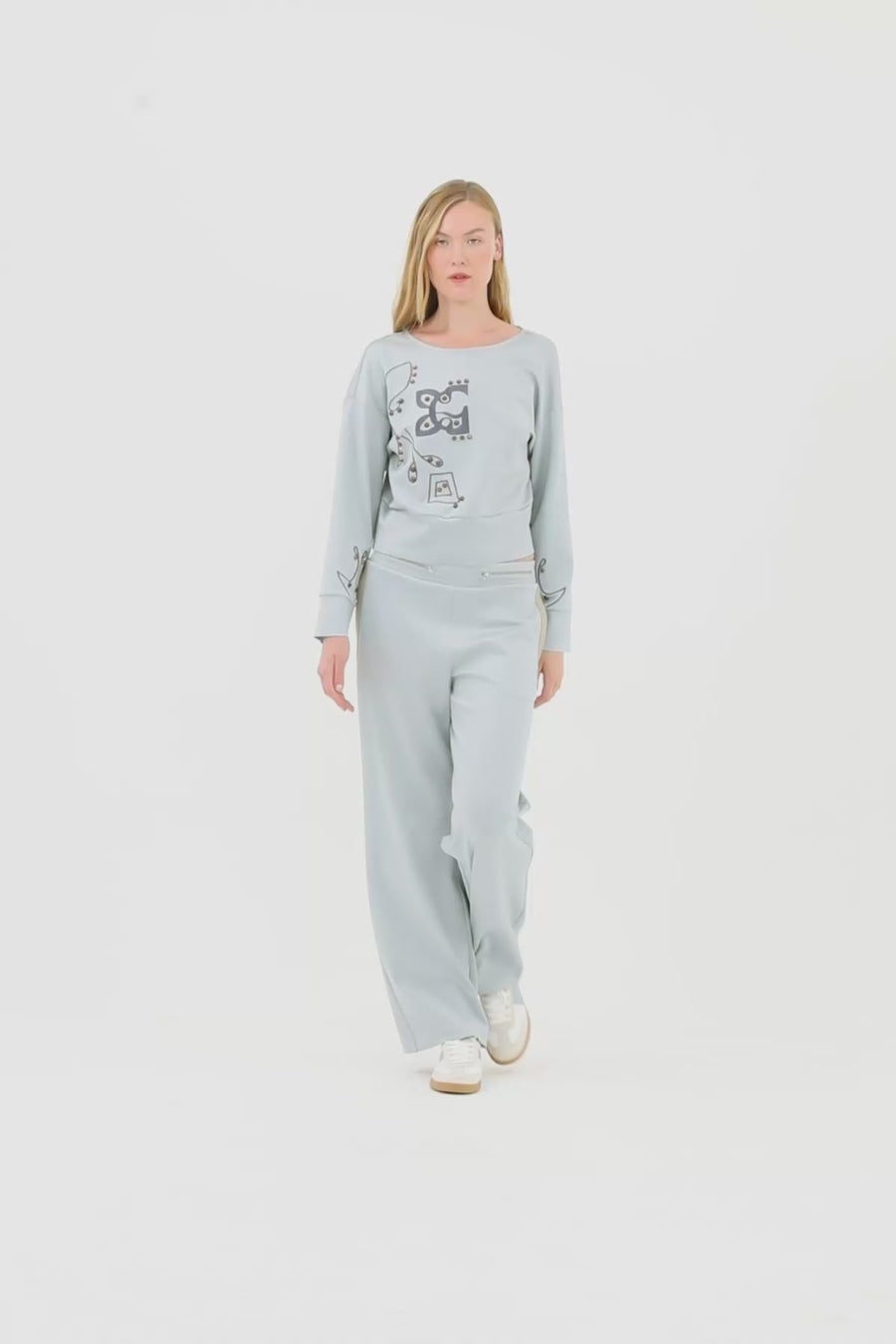 Grey Peter Pan Collar Wool-Blend Sweatshirt