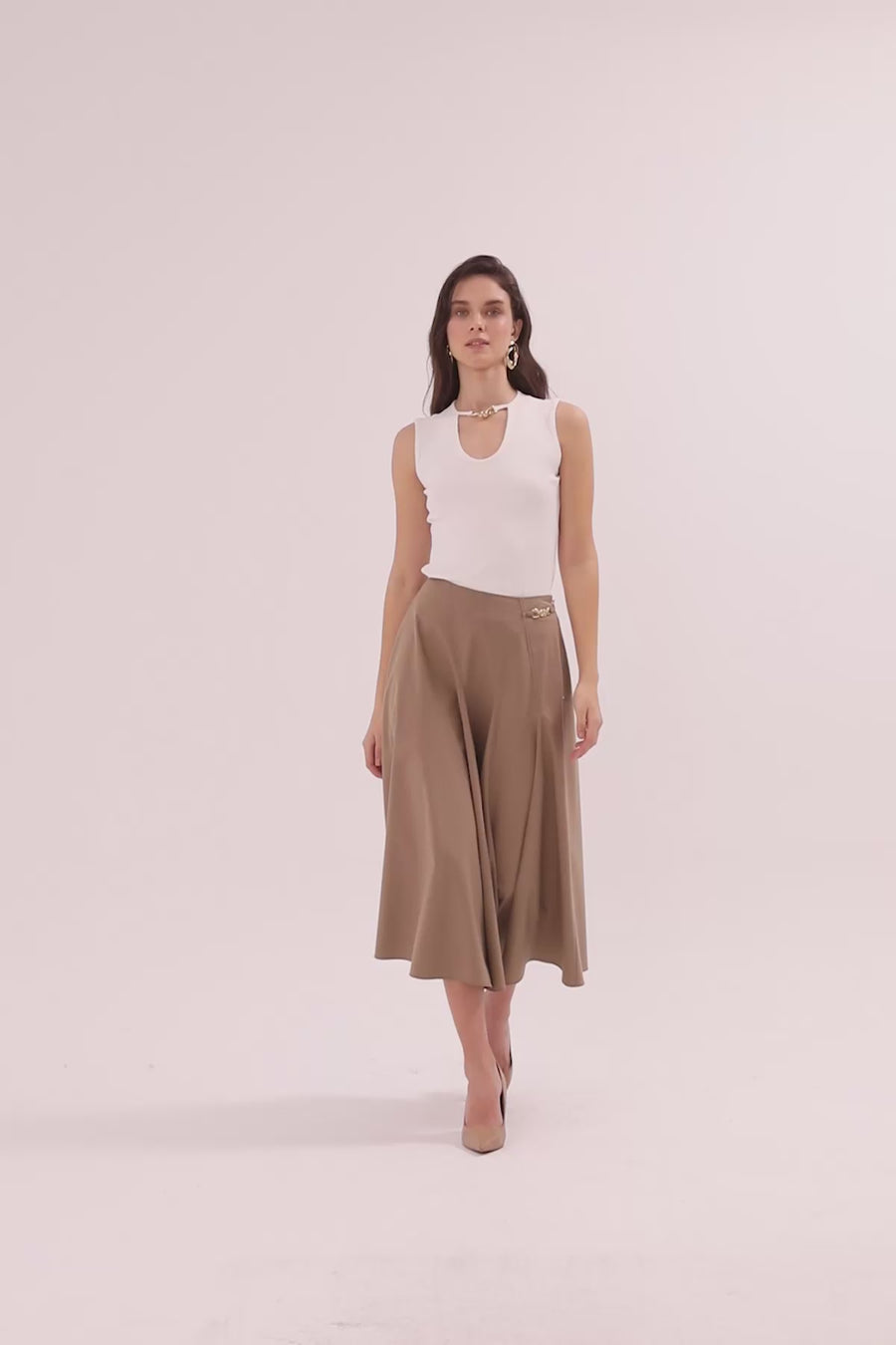 Beige Accessory-Detail Midi Skirt
