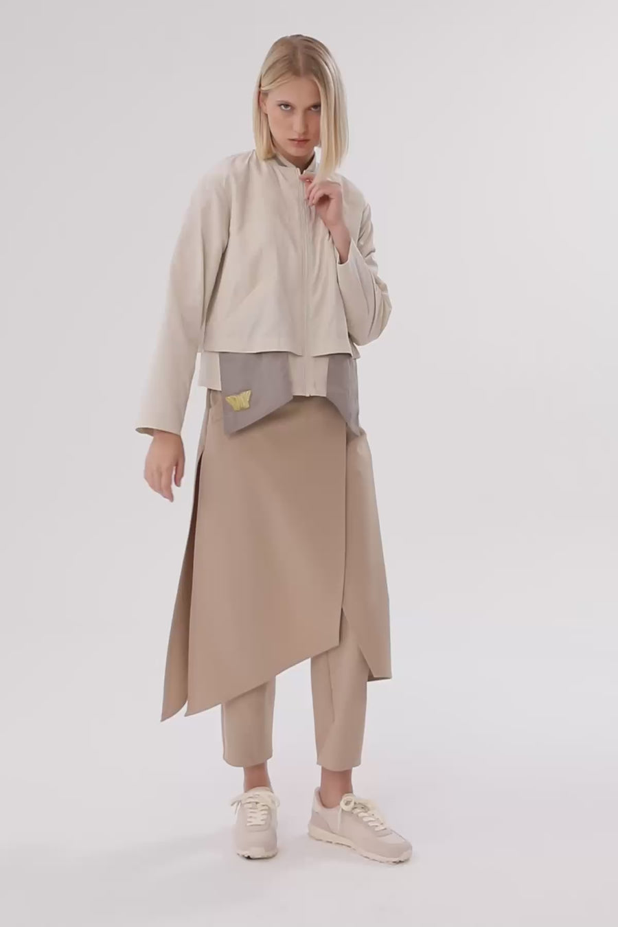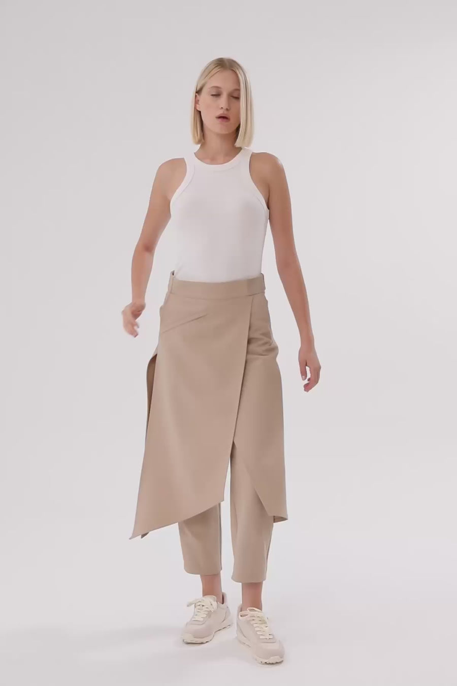 Beige Asymmetric Detail Pants