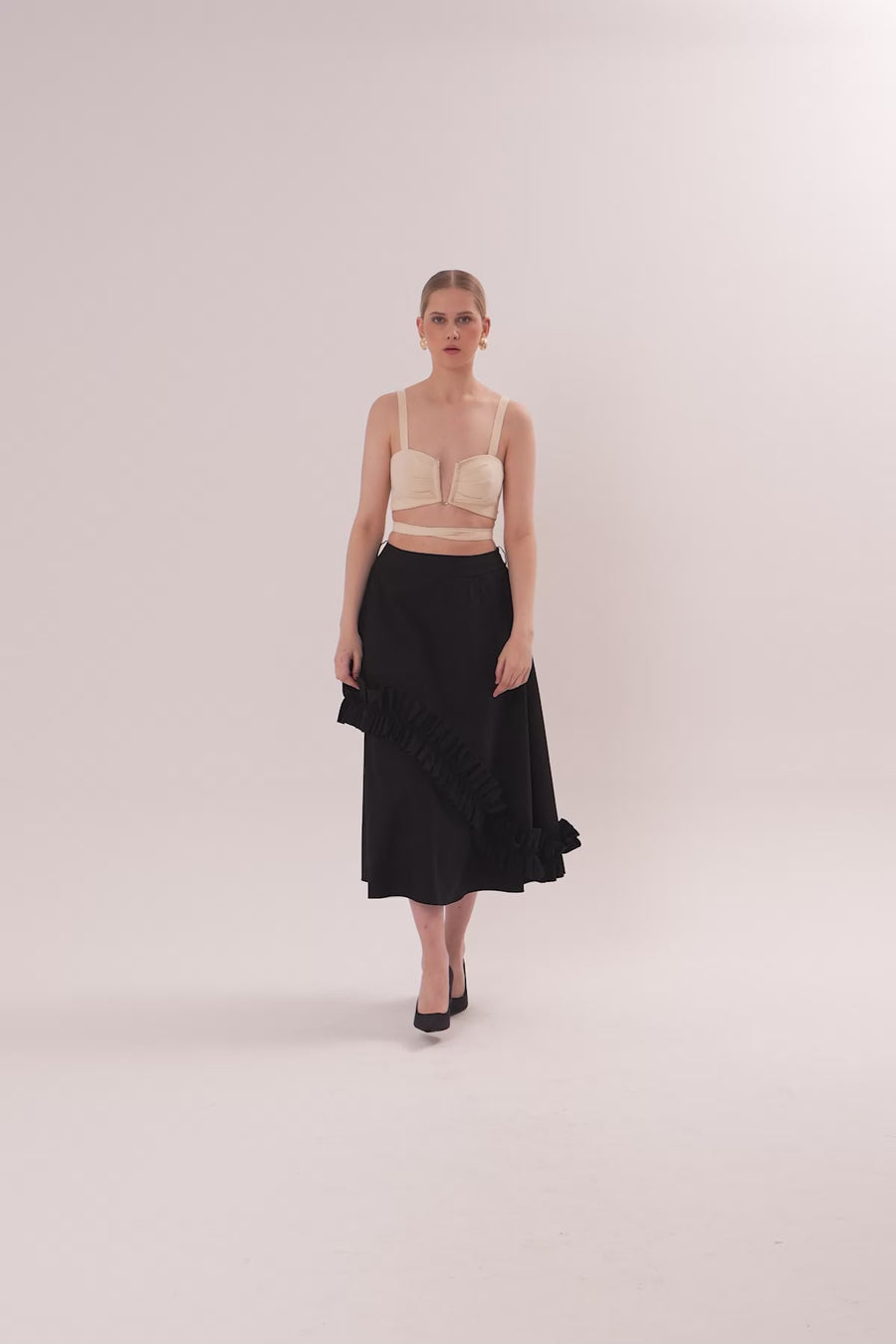 Asymmetric Ruffle Detail Midi Skirt