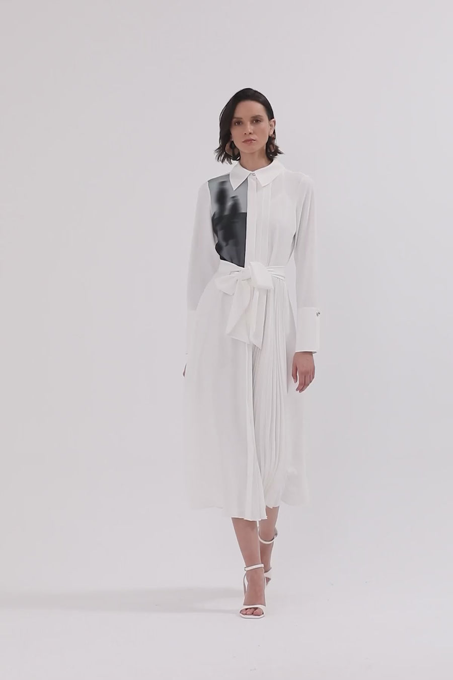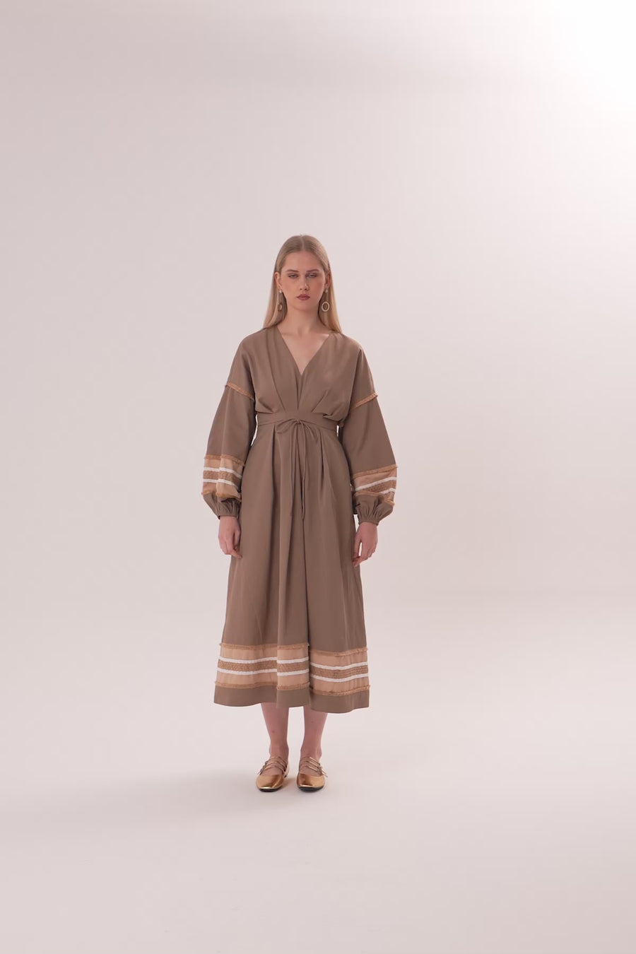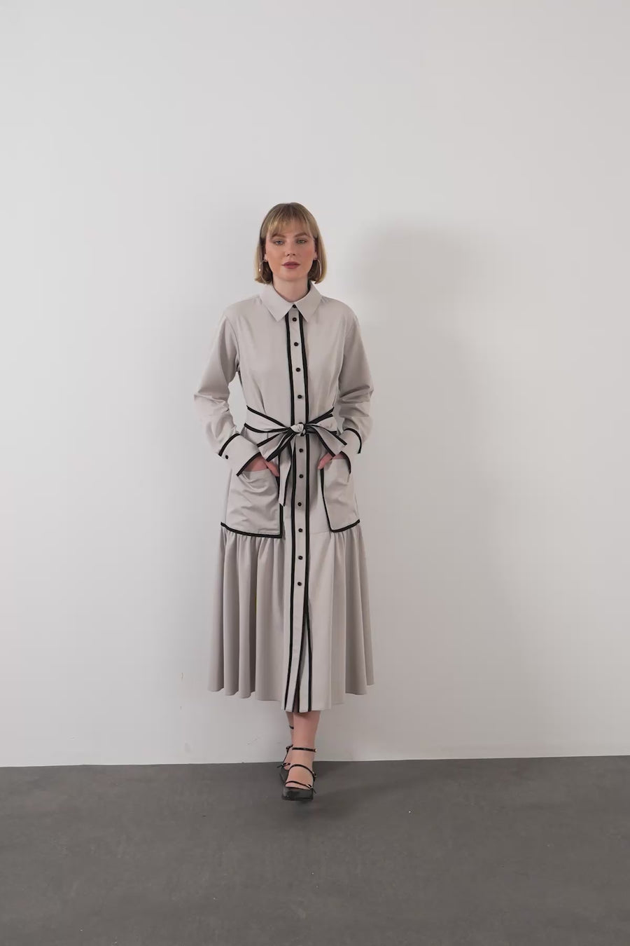 Anthracite Embroidered-Collar Bow-Detail Maxi Dress