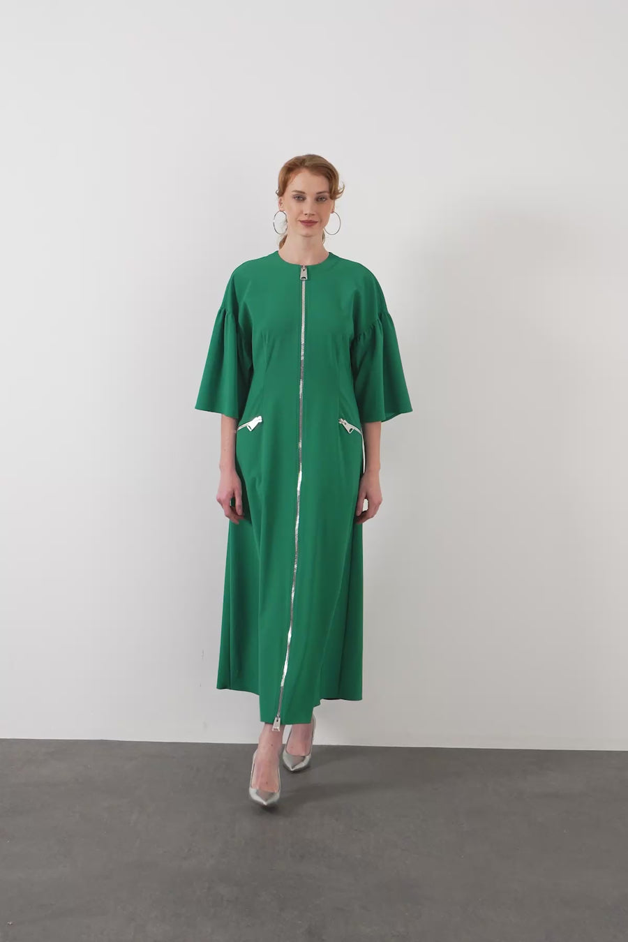 Emerald Green Embroidered-Collar Bow-Detail Maxi Dress