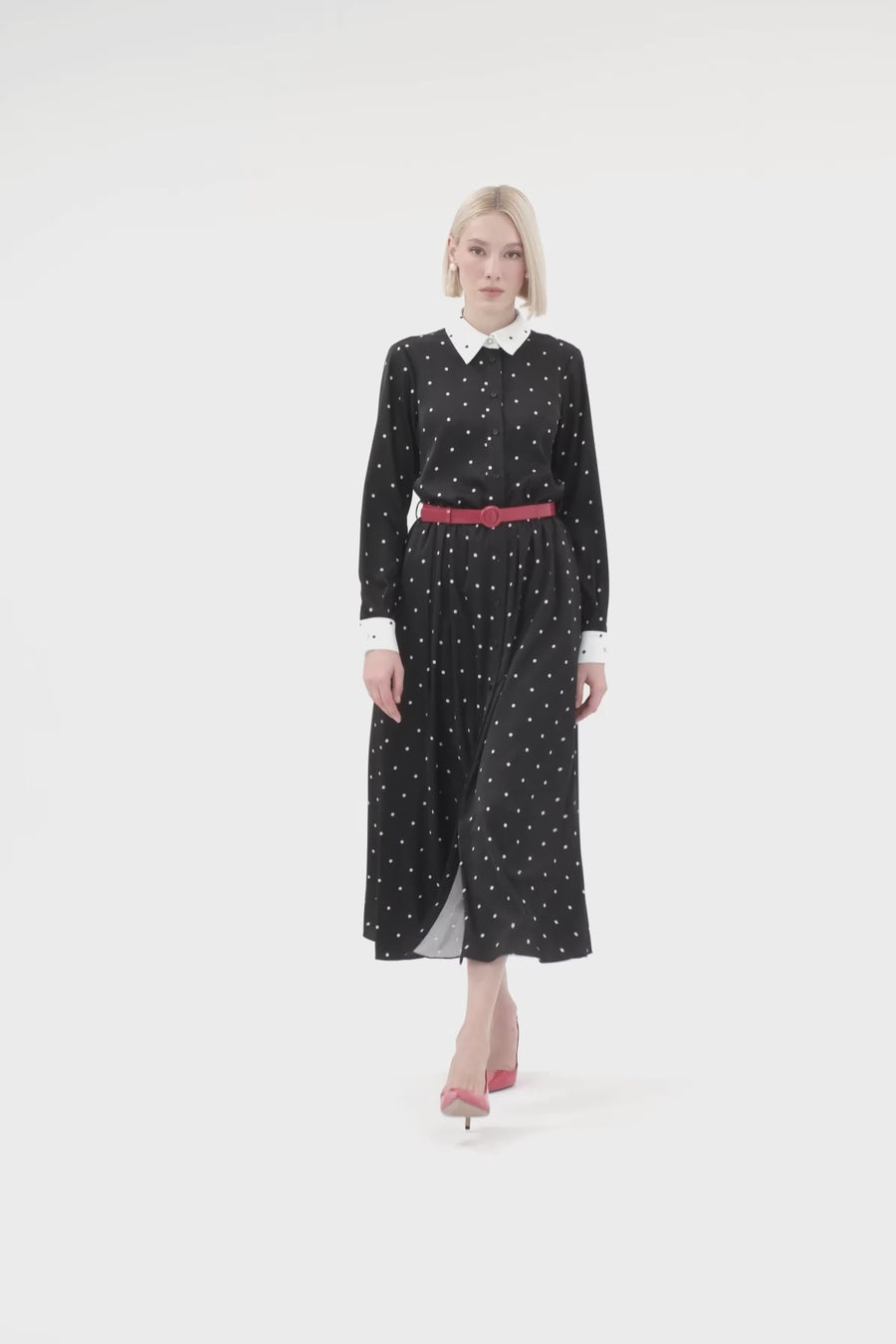 Black Embroidered-Collar Bow-Detail Maxi Dress