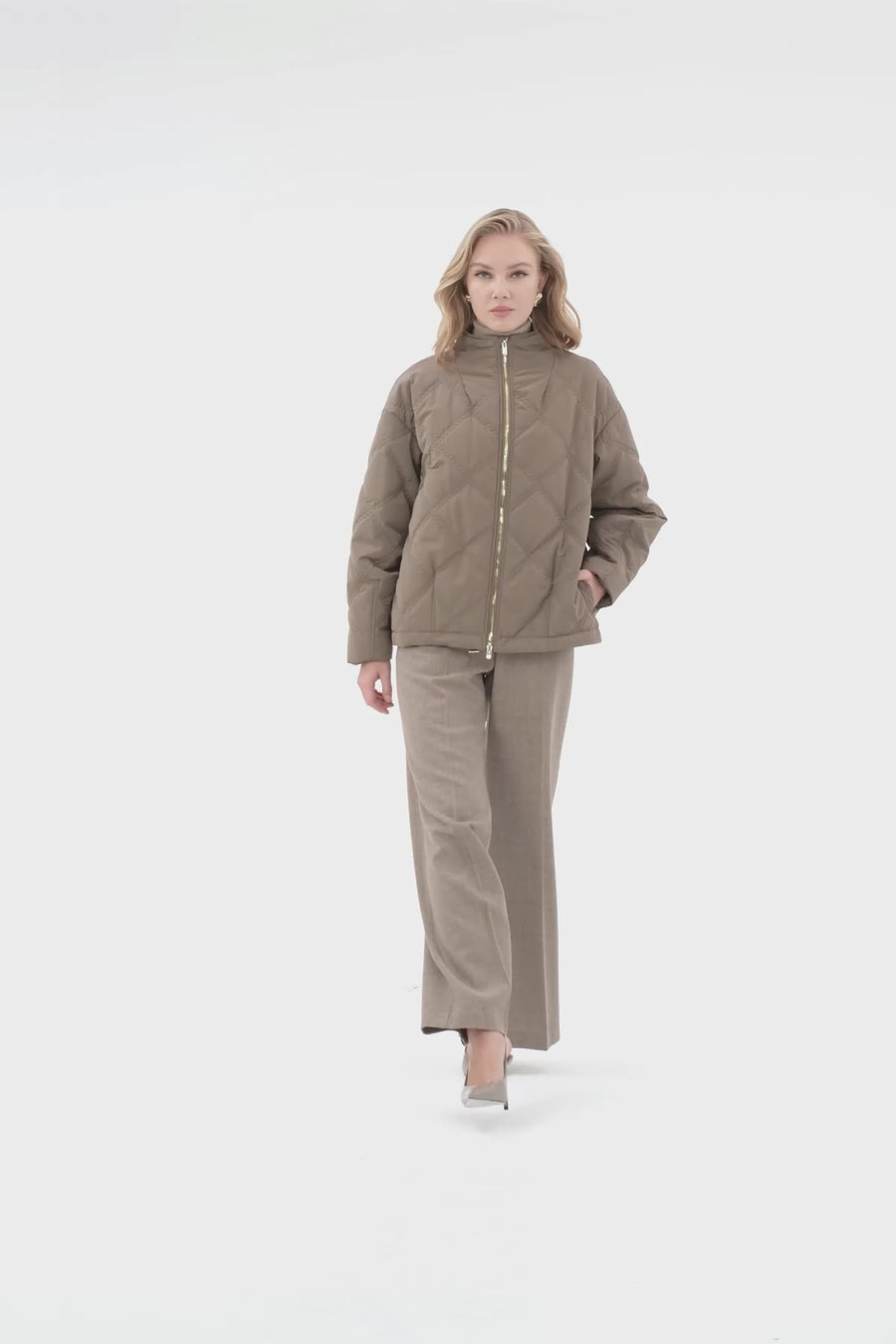 Brown Applique-Pocketed Shirt-Collar Jacket