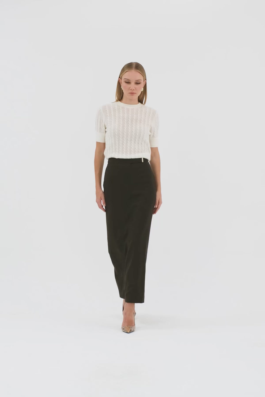 Ecru Pencil Skirt with Slit Detail