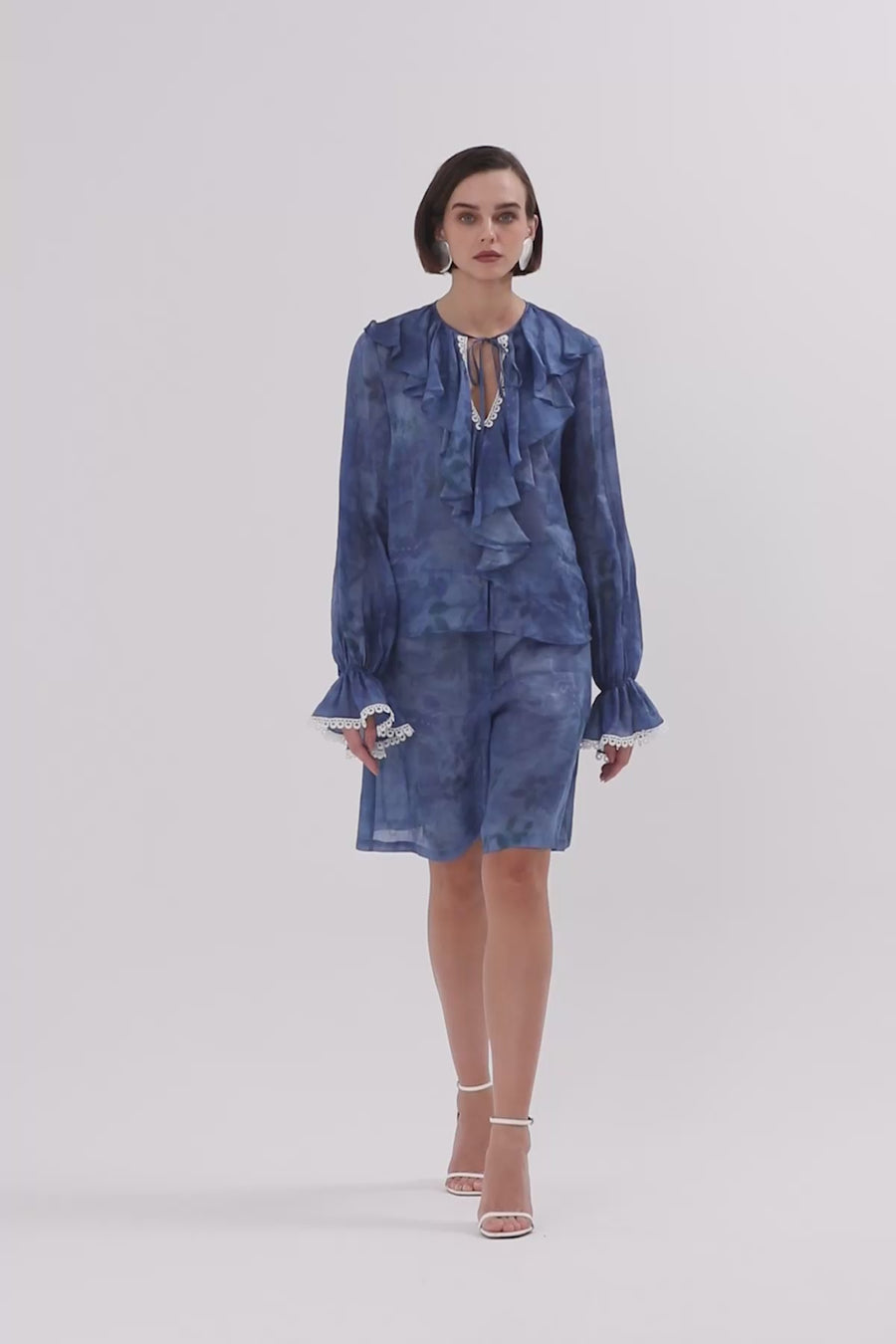 Blue Ruffle Collar Detail Blouse