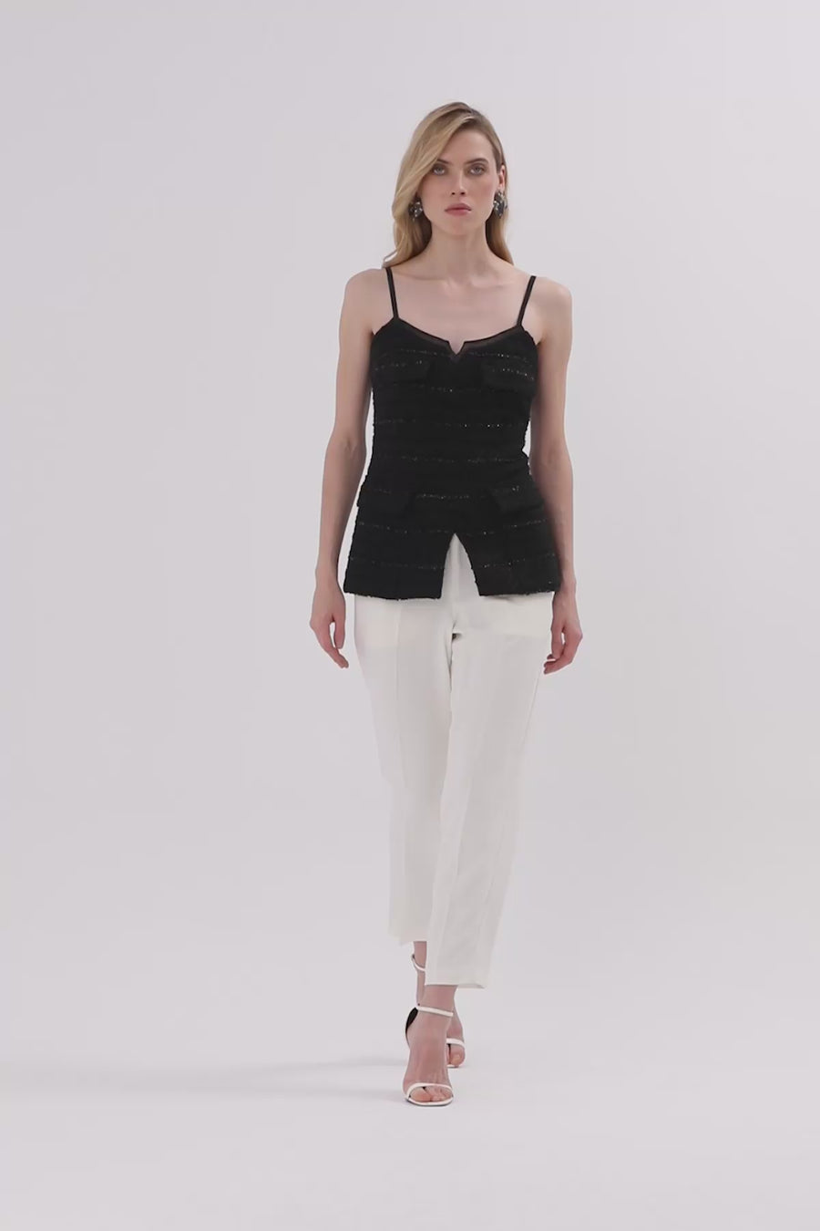 Ecru Sequined Sleeveless Blouse
