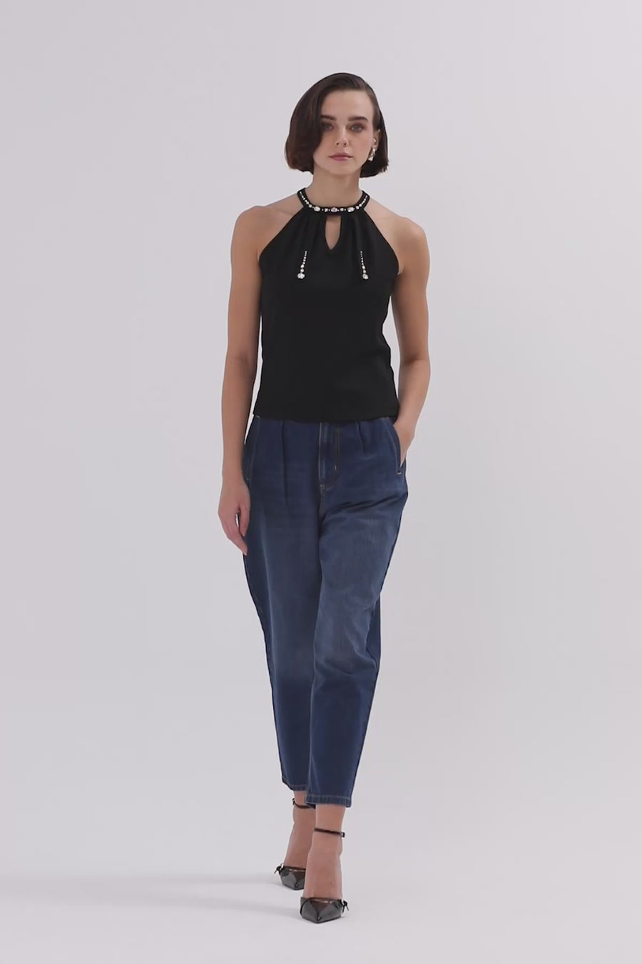 Black Halter Neck Teardrop Blouse