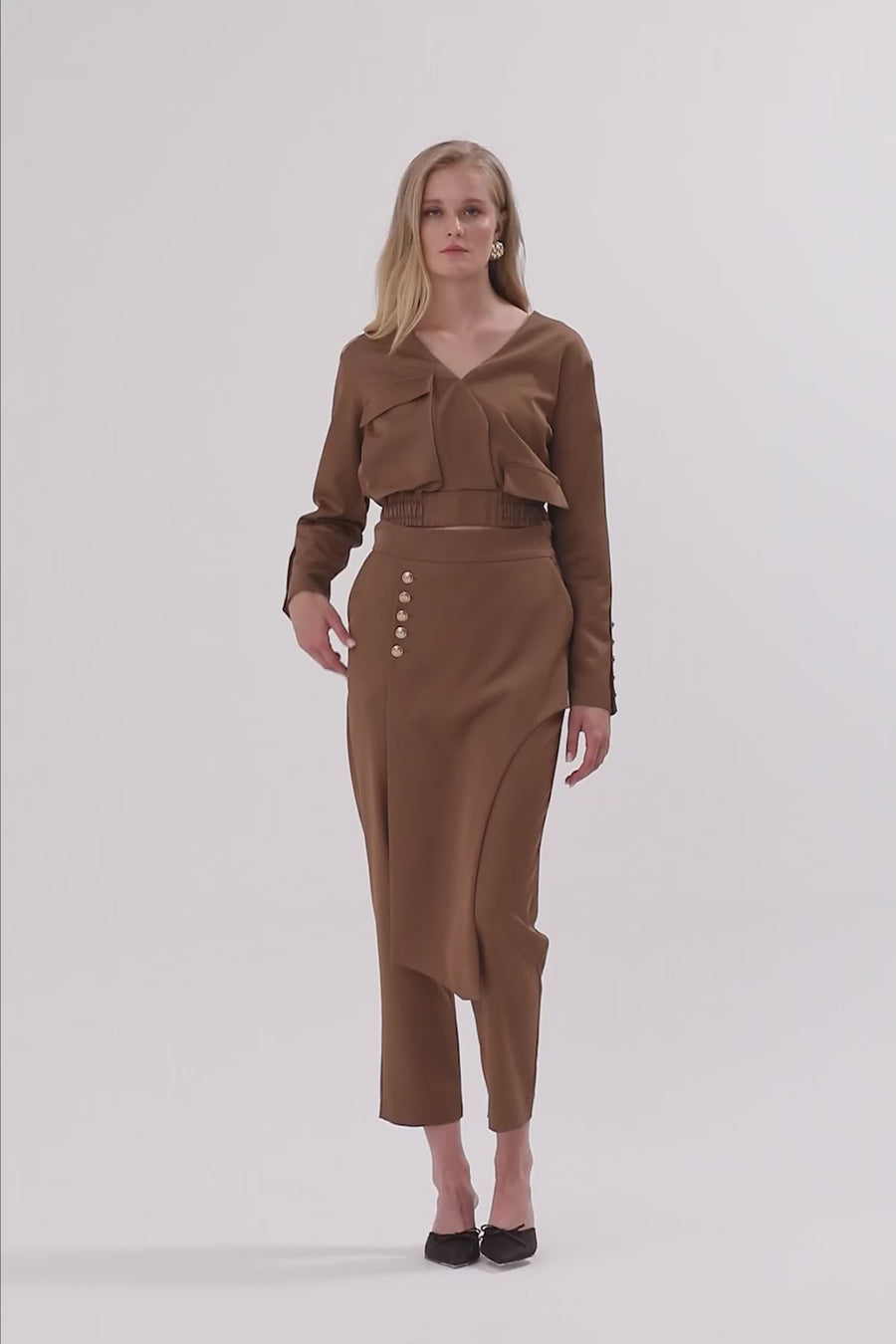 Brown Zip-Up Button Detail Cropped Jacket
