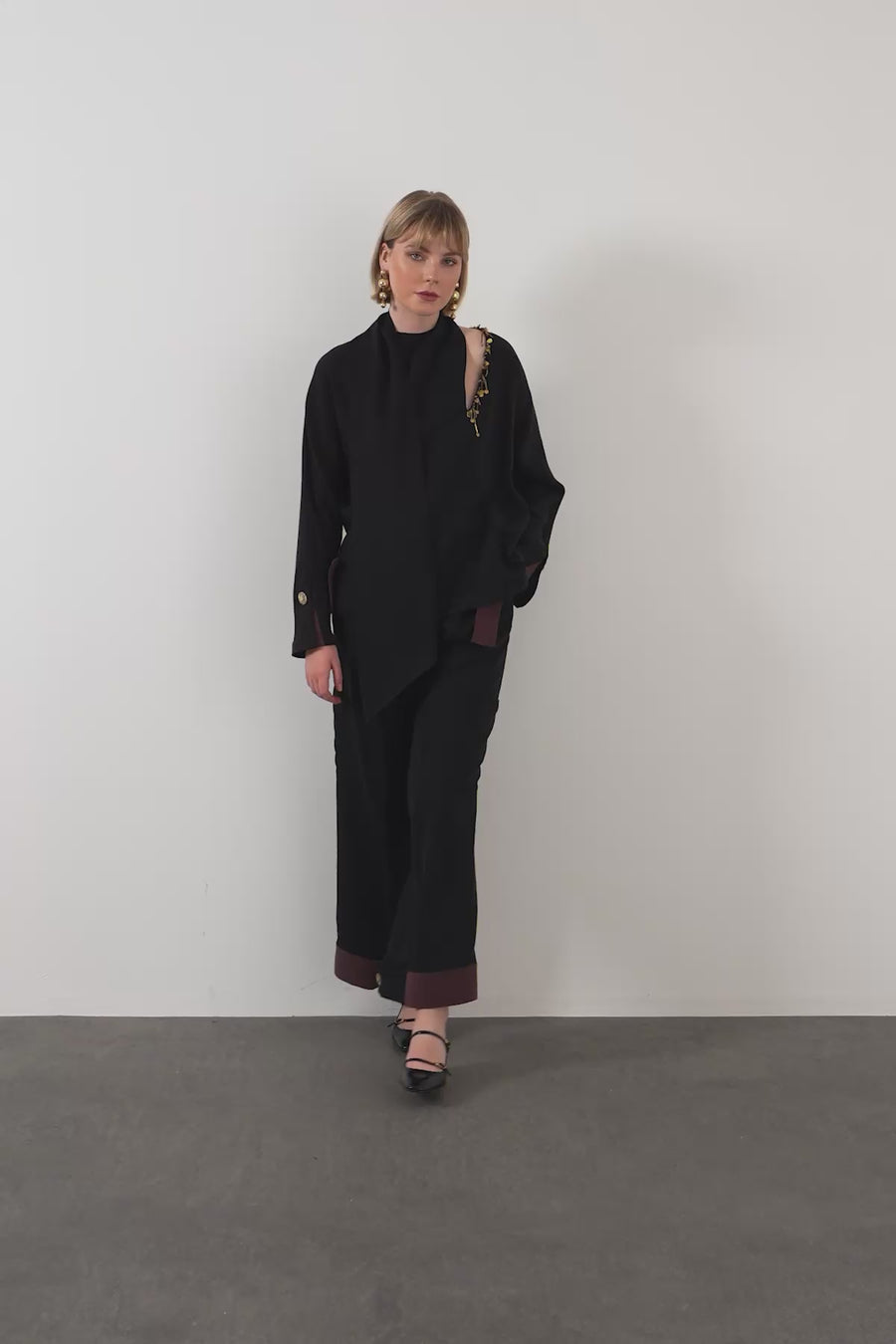 Black Back-Tie Slit Pocket Long Blouse