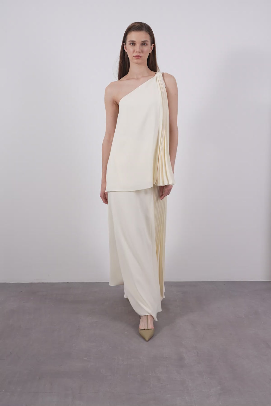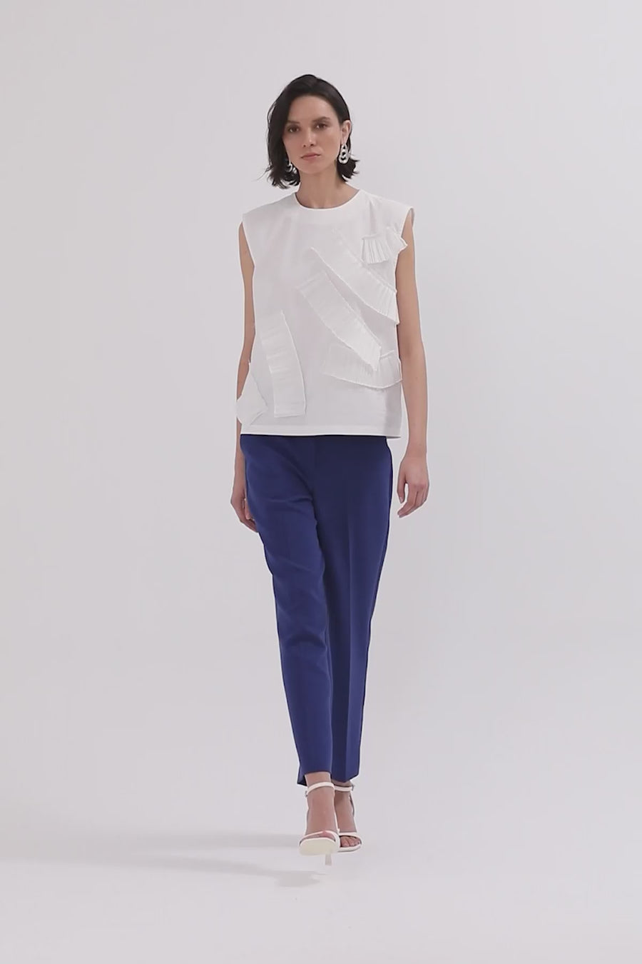 White Pleated Panel Sleeveless Blouse