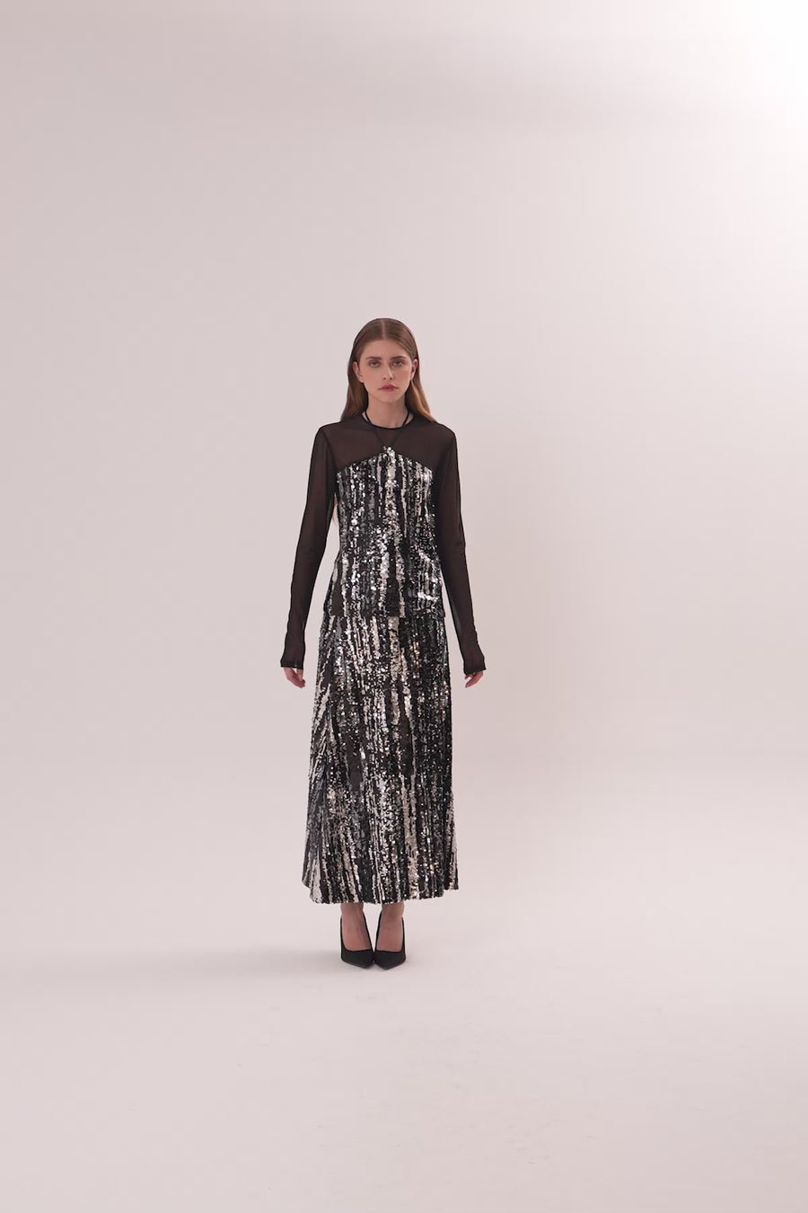 Black Tulle Detail Shimmer Sequin Blouse