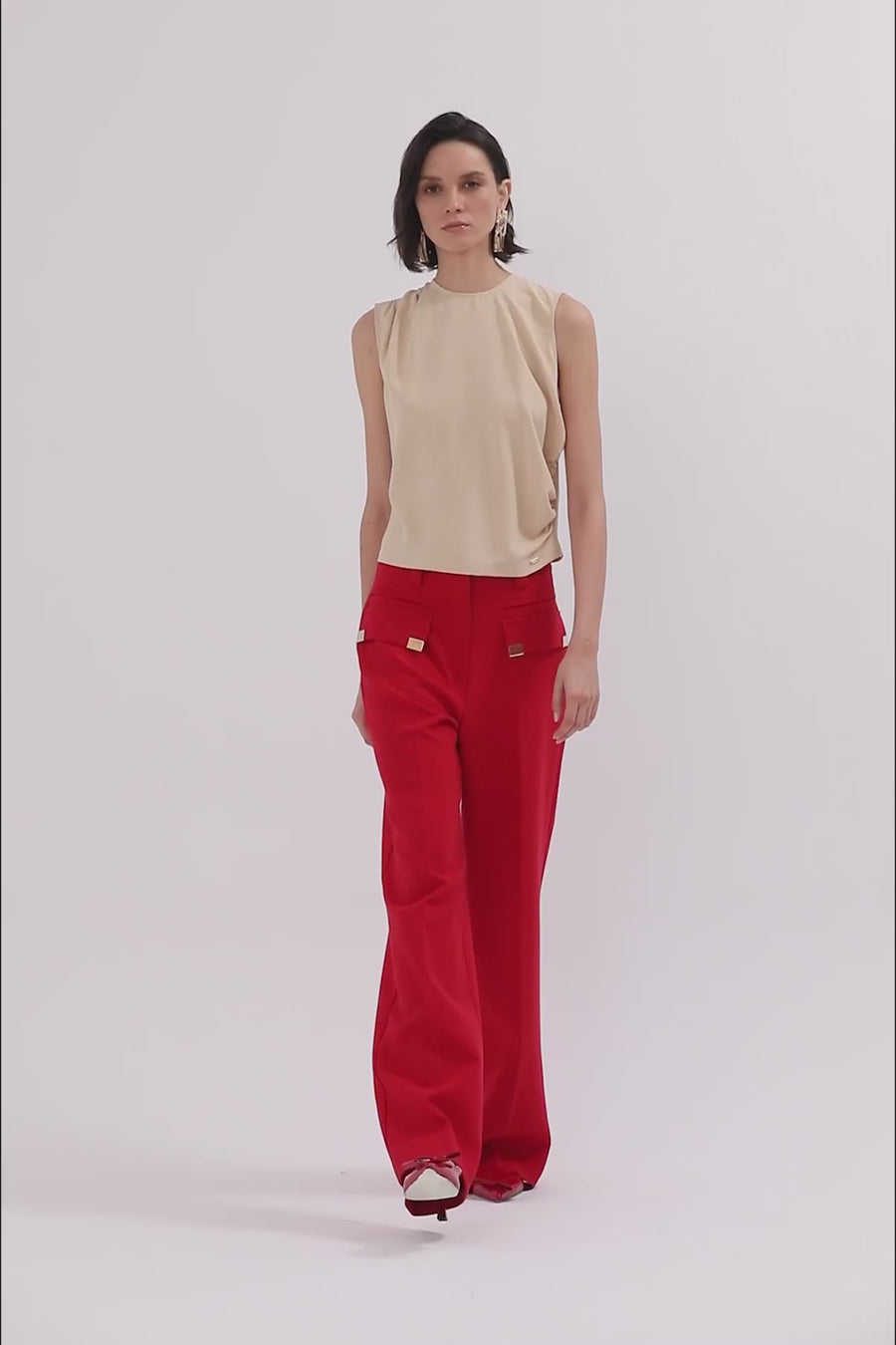 Red Halter Neck Stone Detail Blouse