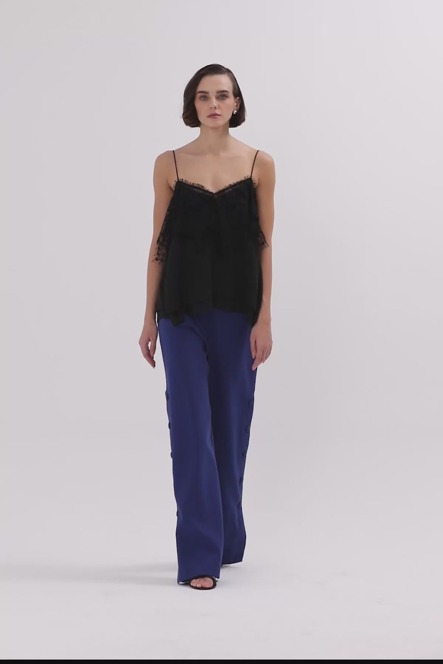 Navy Button-Detail Strappy Blouse