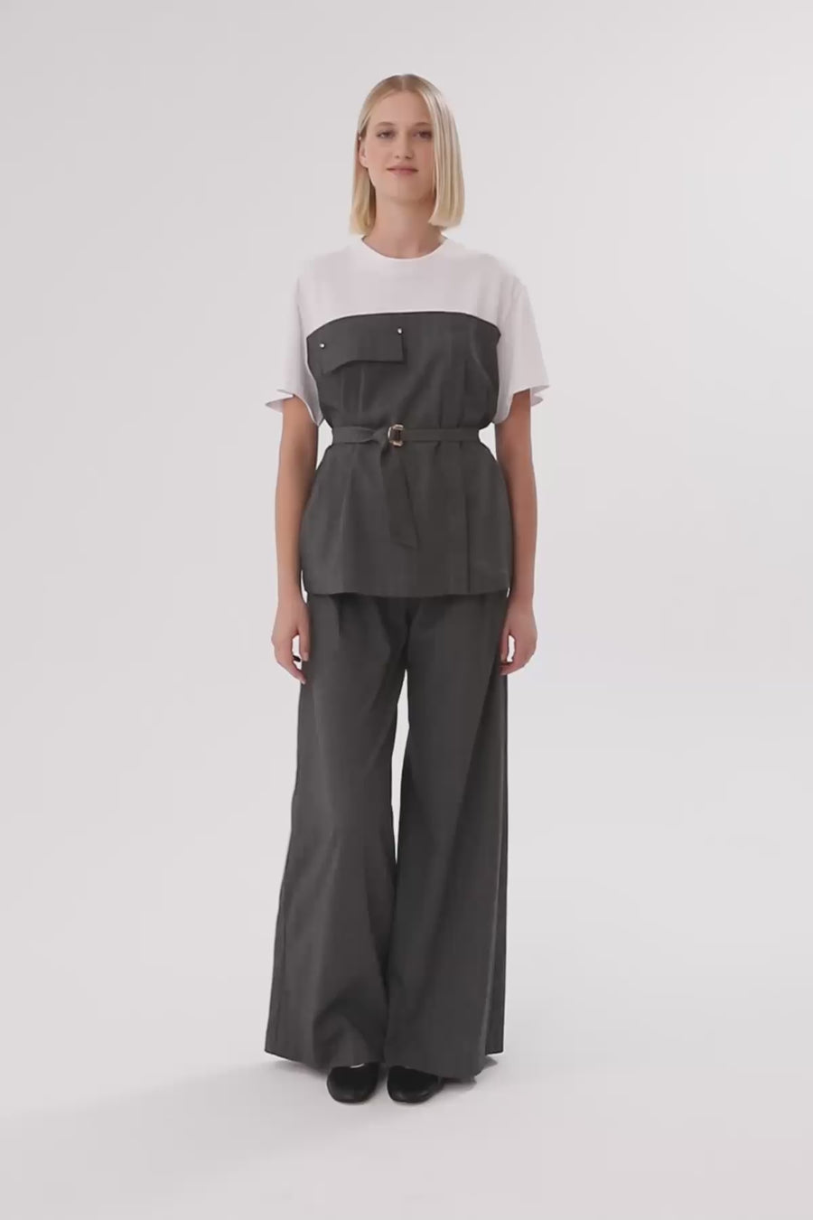 White/Grey Short Sleeve Blouse