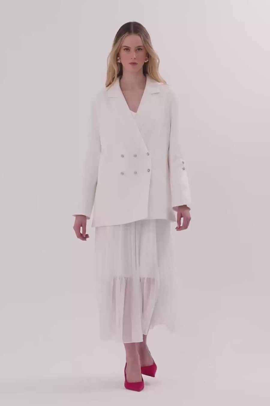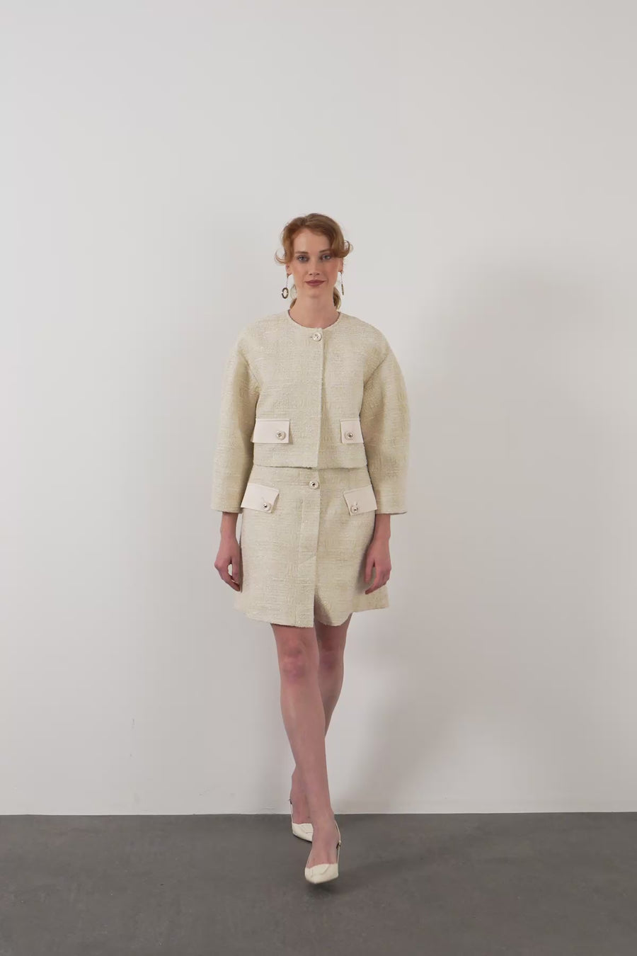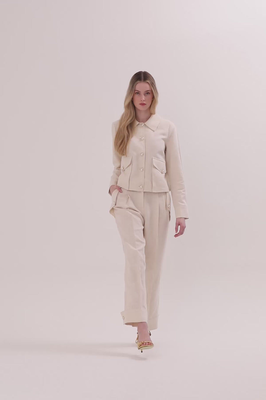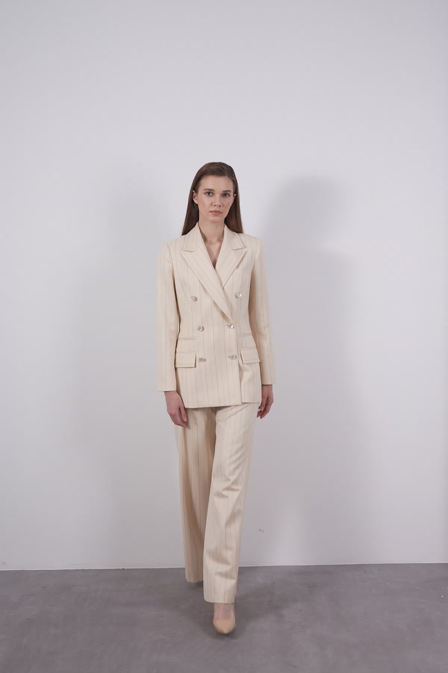 Ecru Double-Breasted Contrast-Stitch Jacket