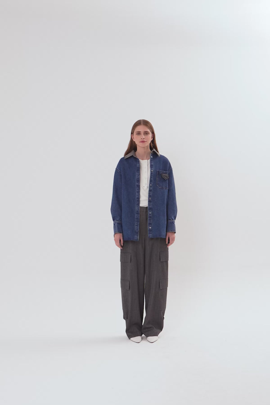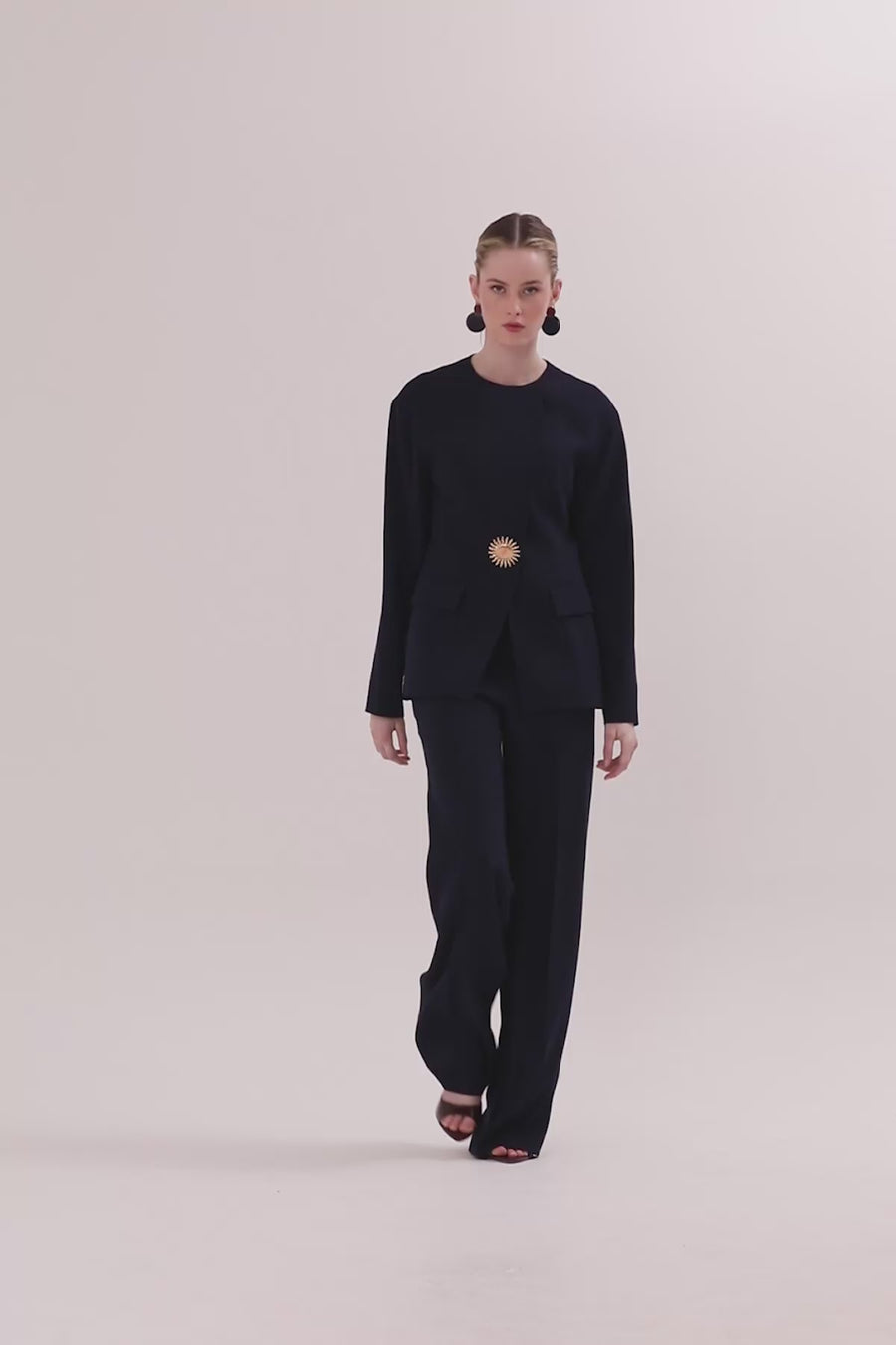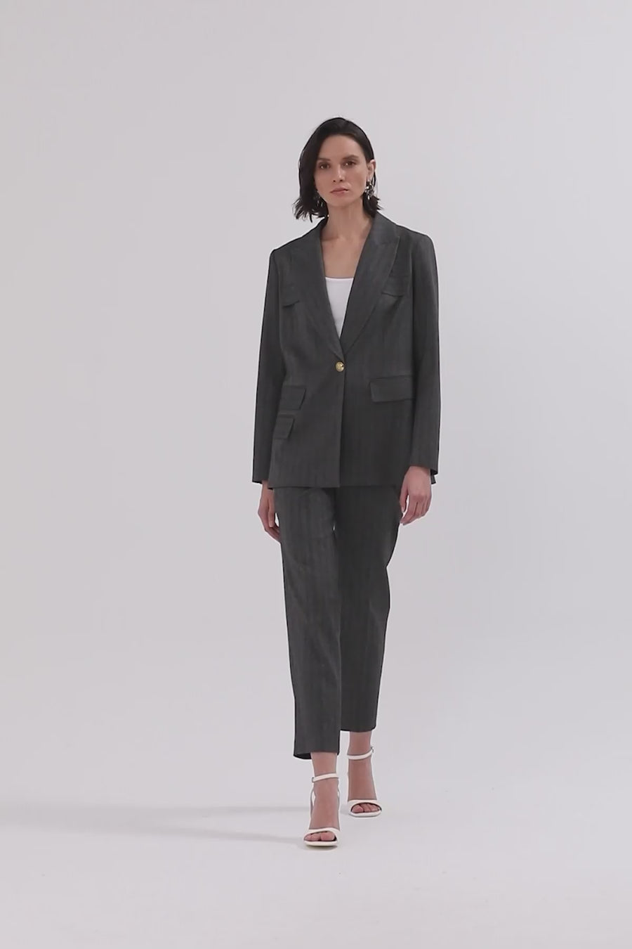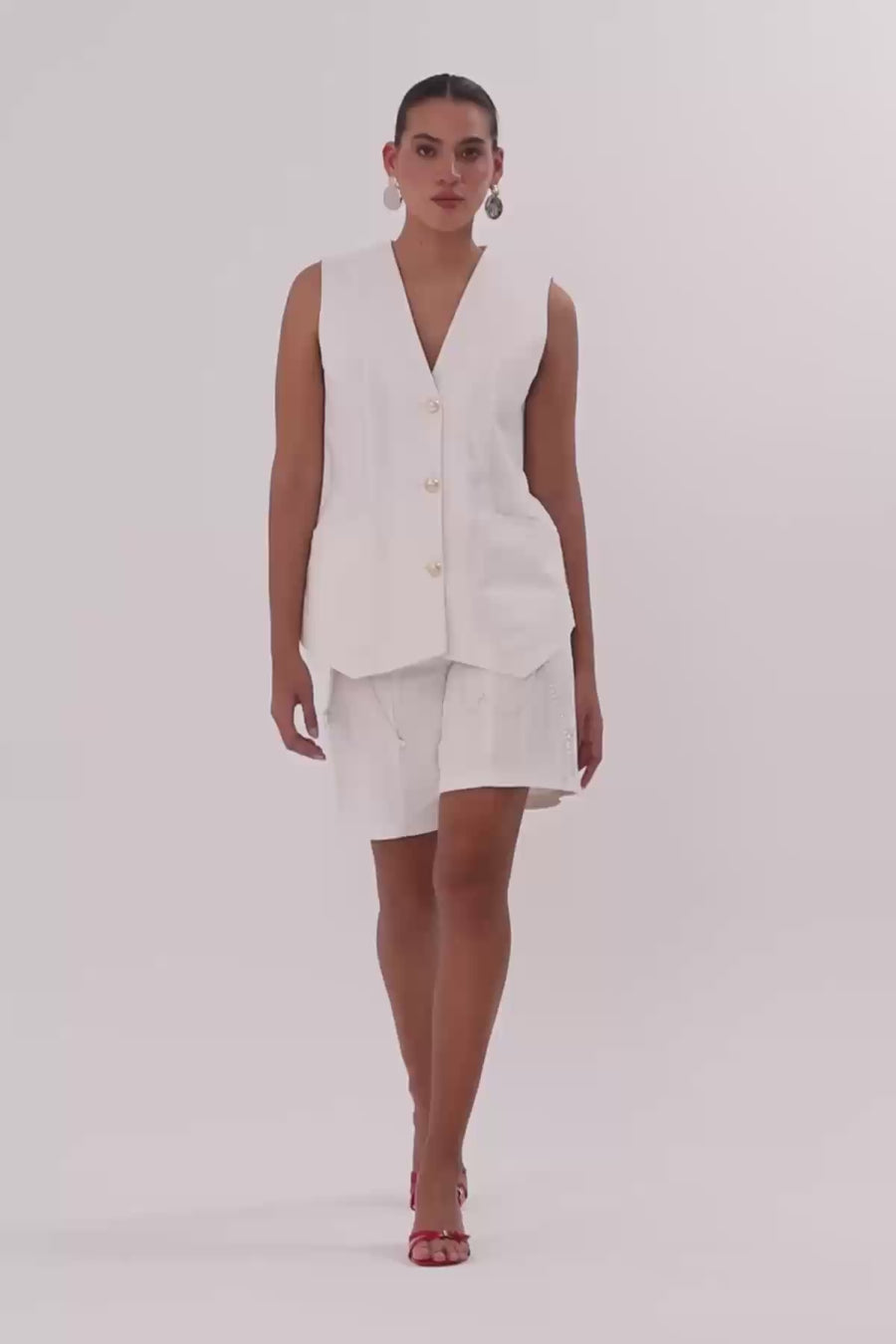 Ecru Double-Breasted Contrast-Stitch Jacket
