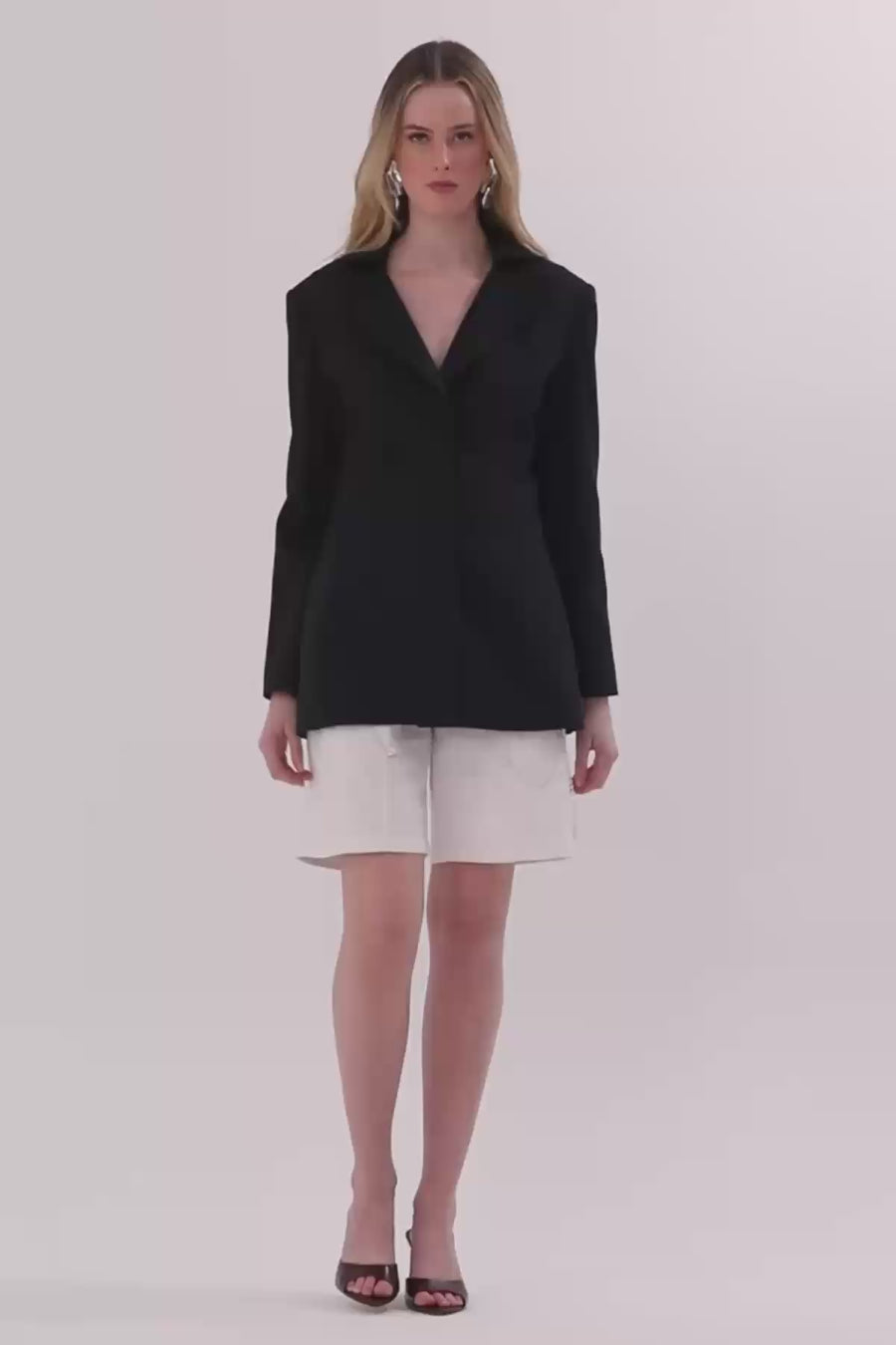Snap Detail Shoulder Pad Pleated Pocket Lined Jacket