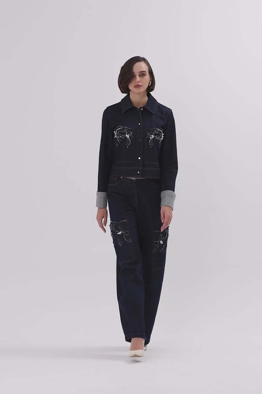 Blue Pearl-Embroidered Denim Jacket