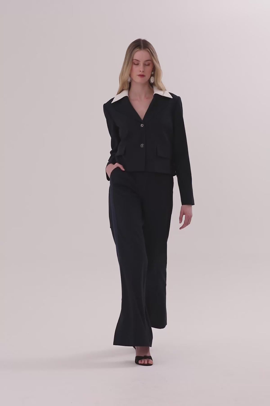 Navy Contrast-Collar Jacket