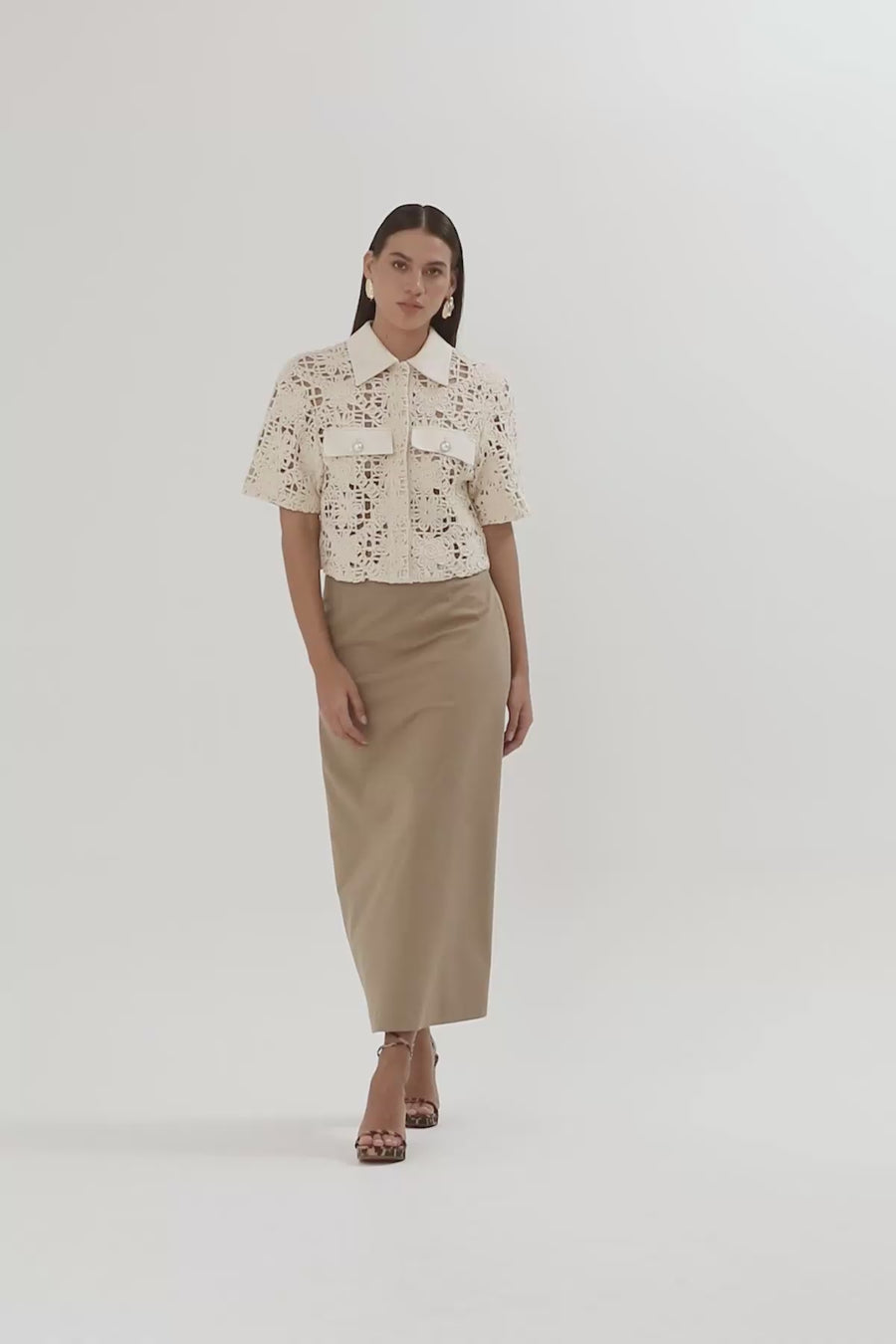 Ecru Lace-Hem Midi Skirt