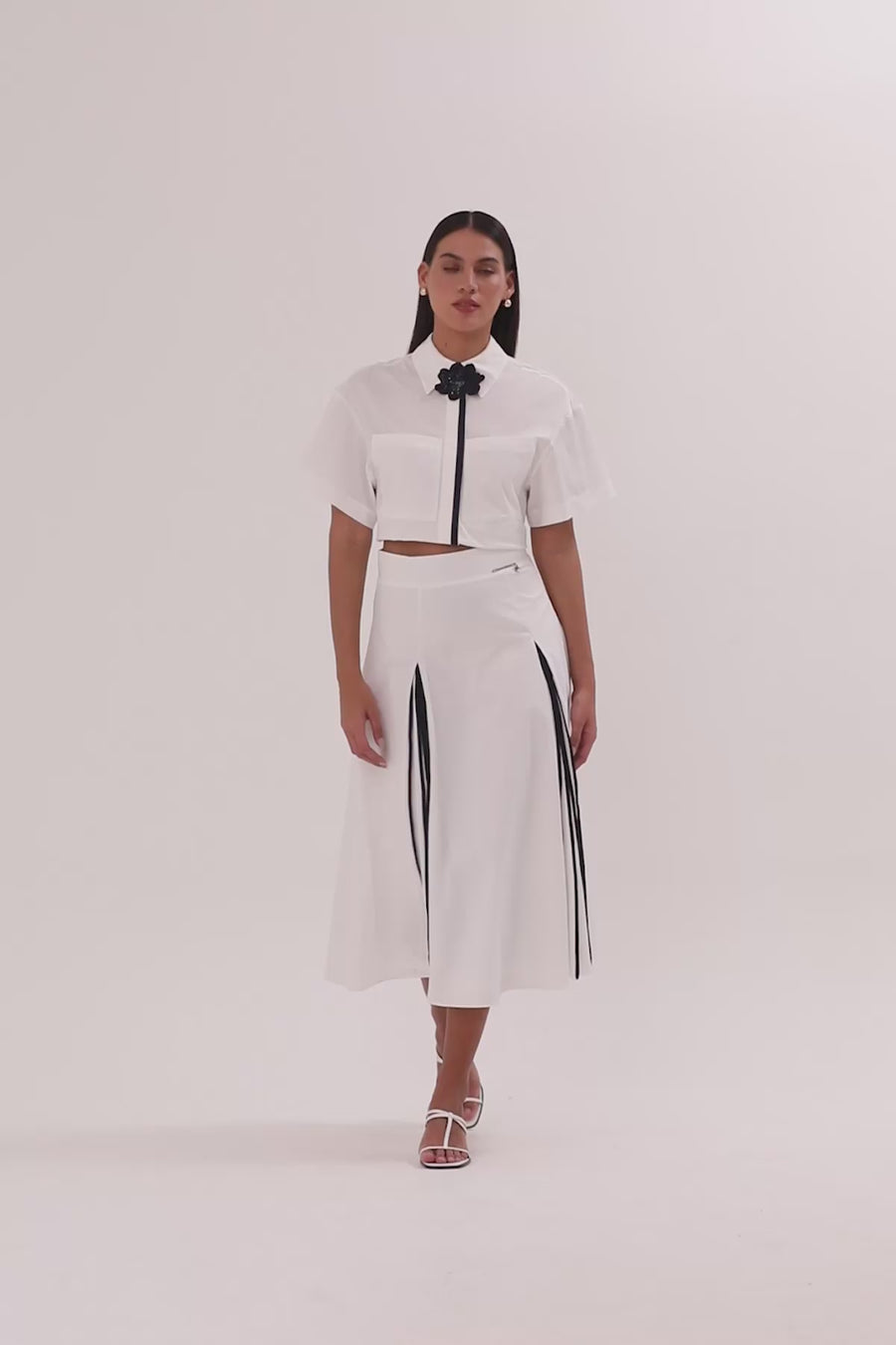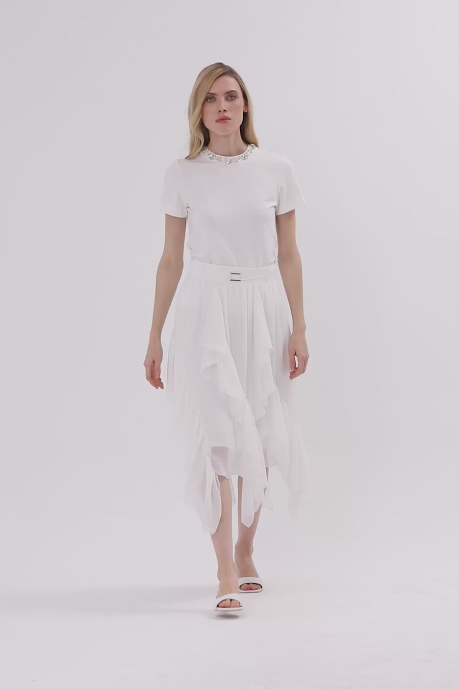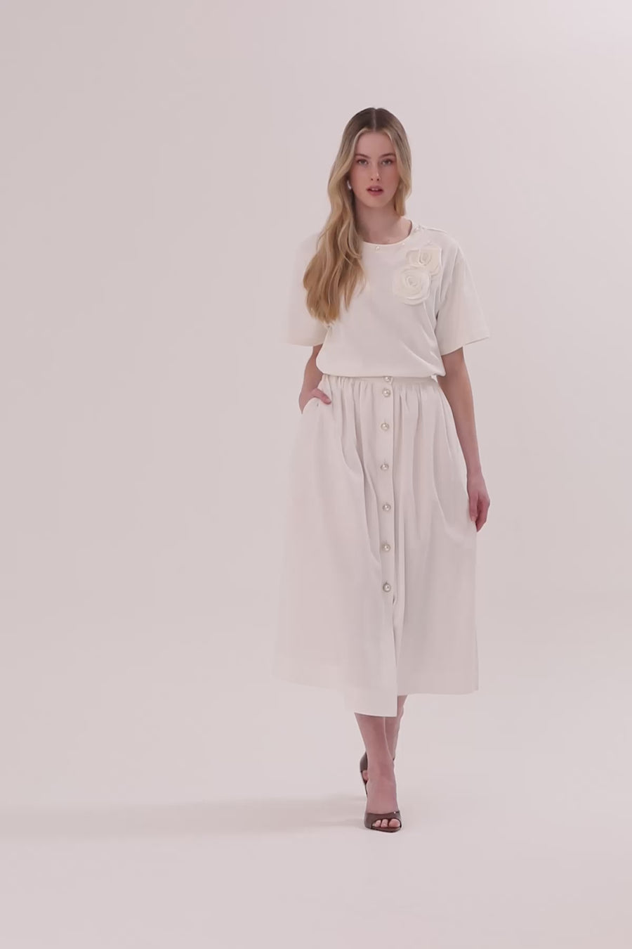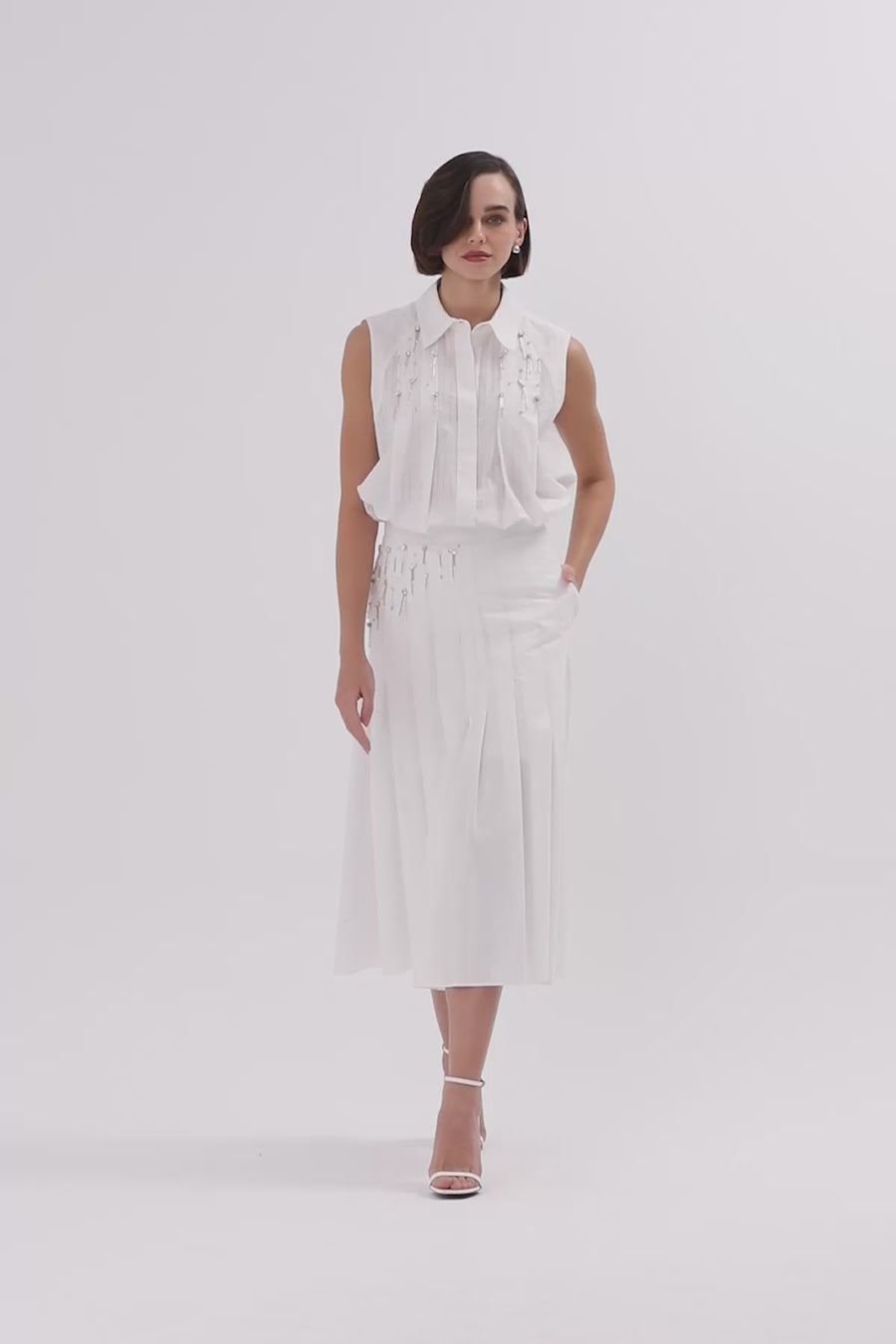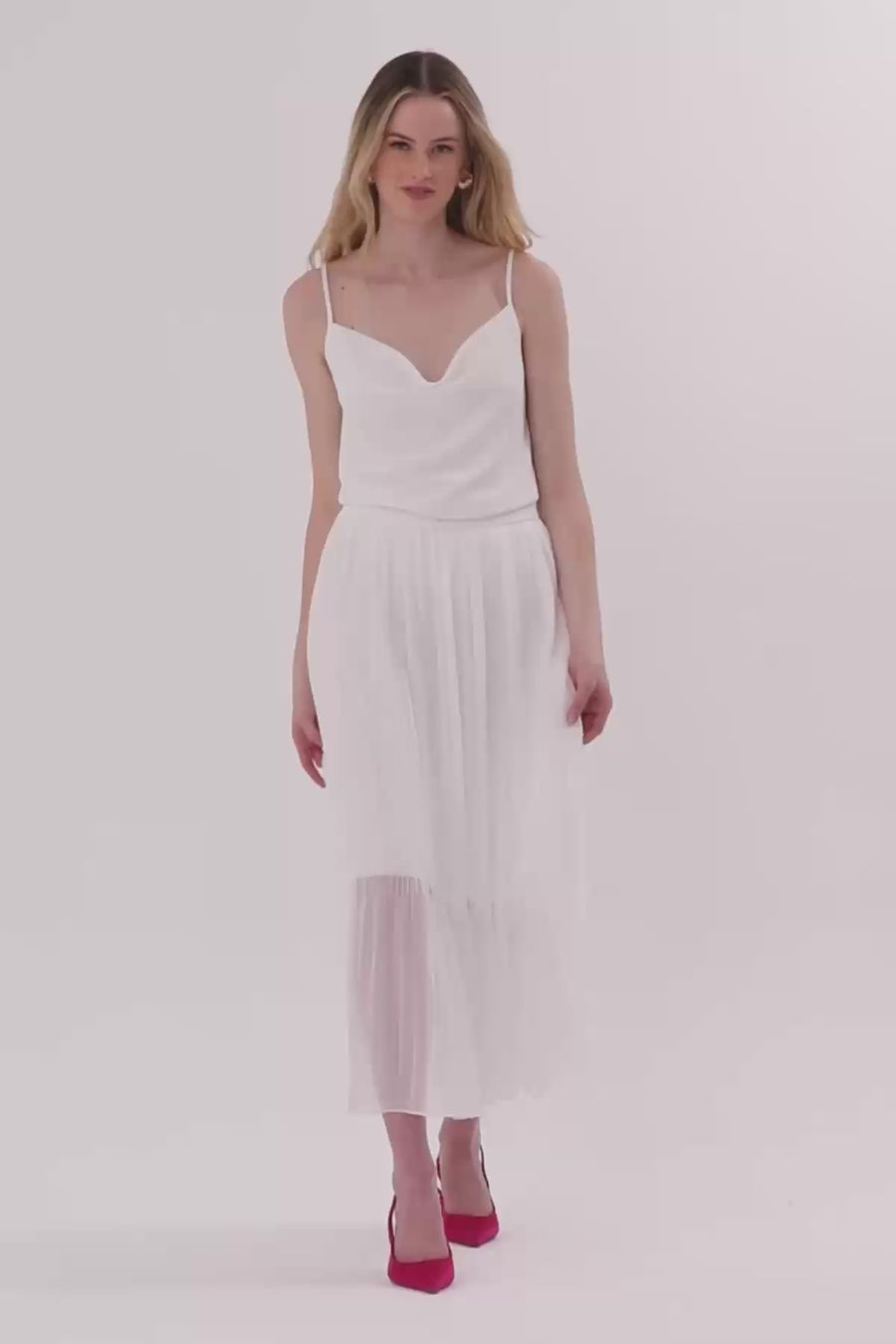 White Pleated Midi Skirt