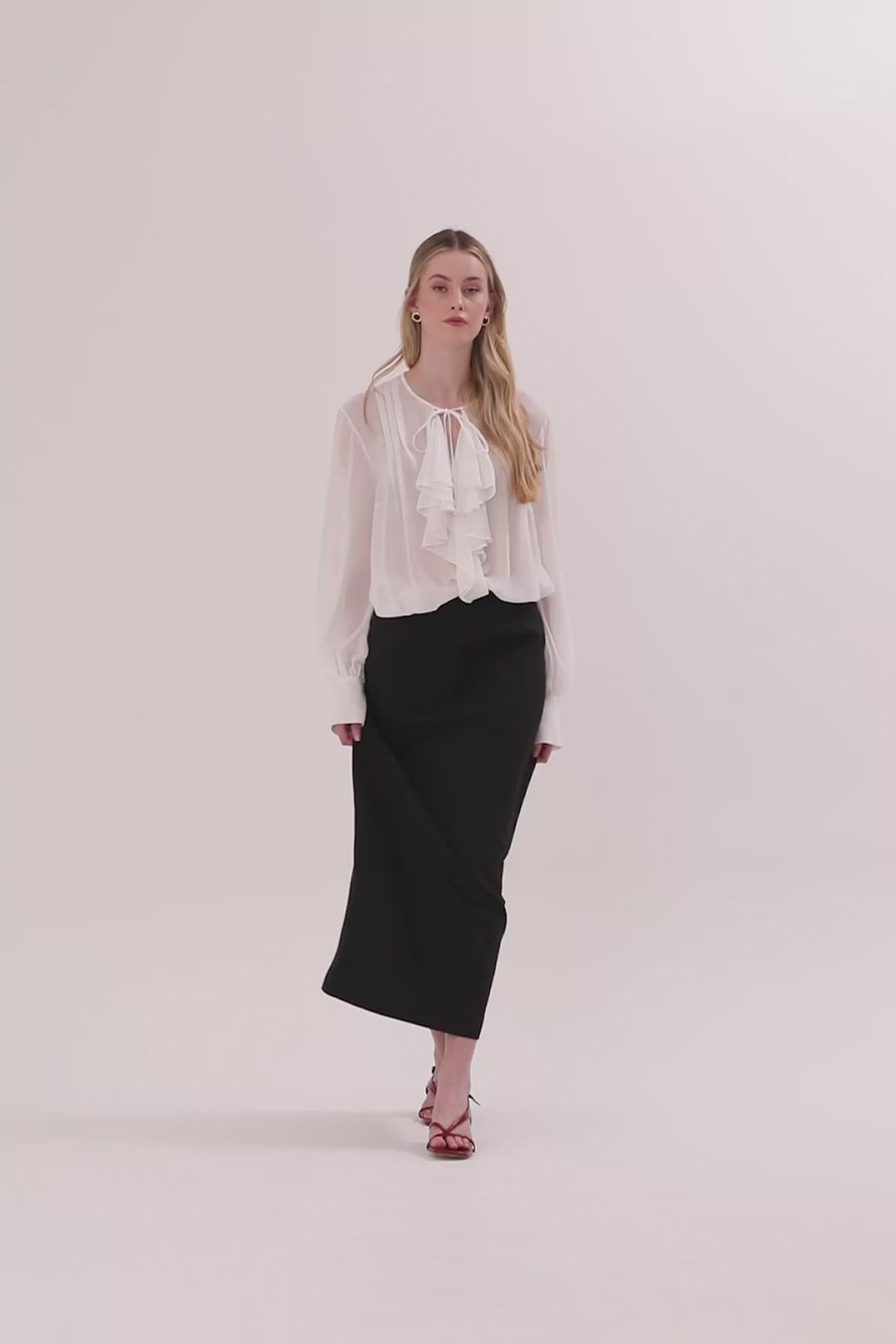 Ecru Side-Slit Midi Skirt