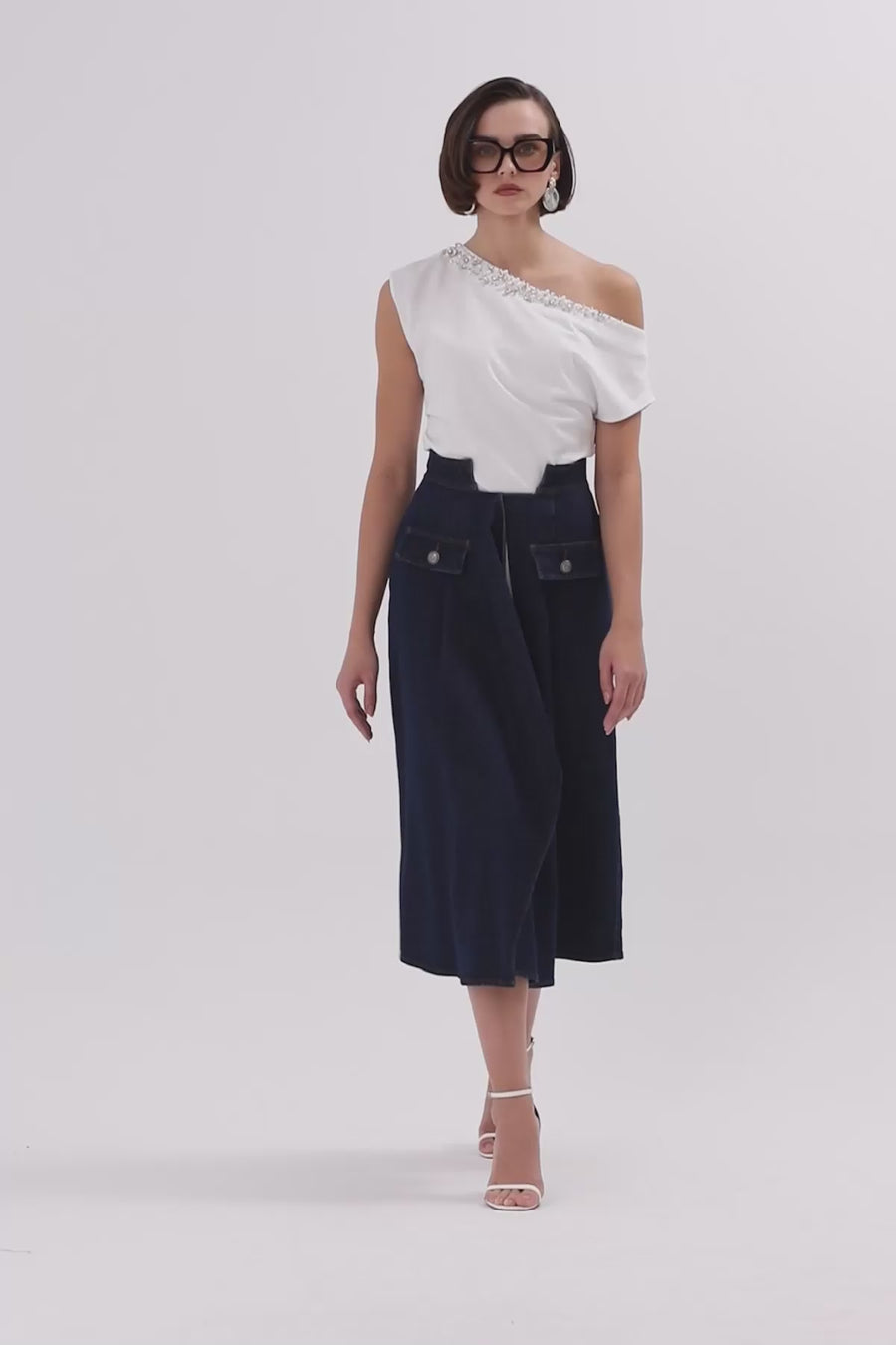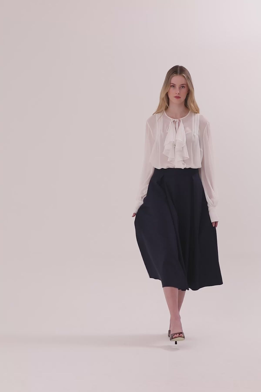 Ecru Asymmetric Midi Skirt