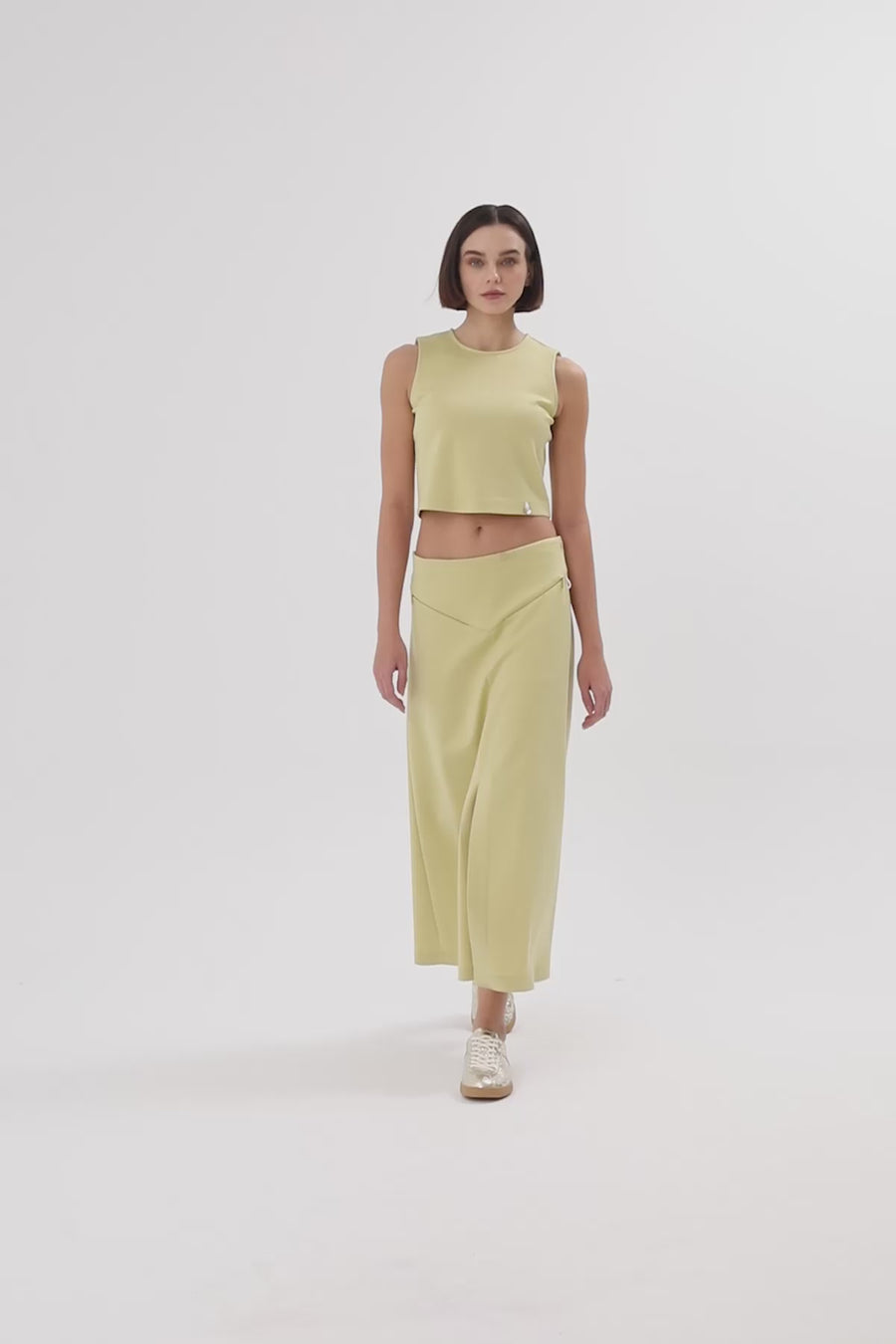 Yellow Slit-Detail Midi Skirt