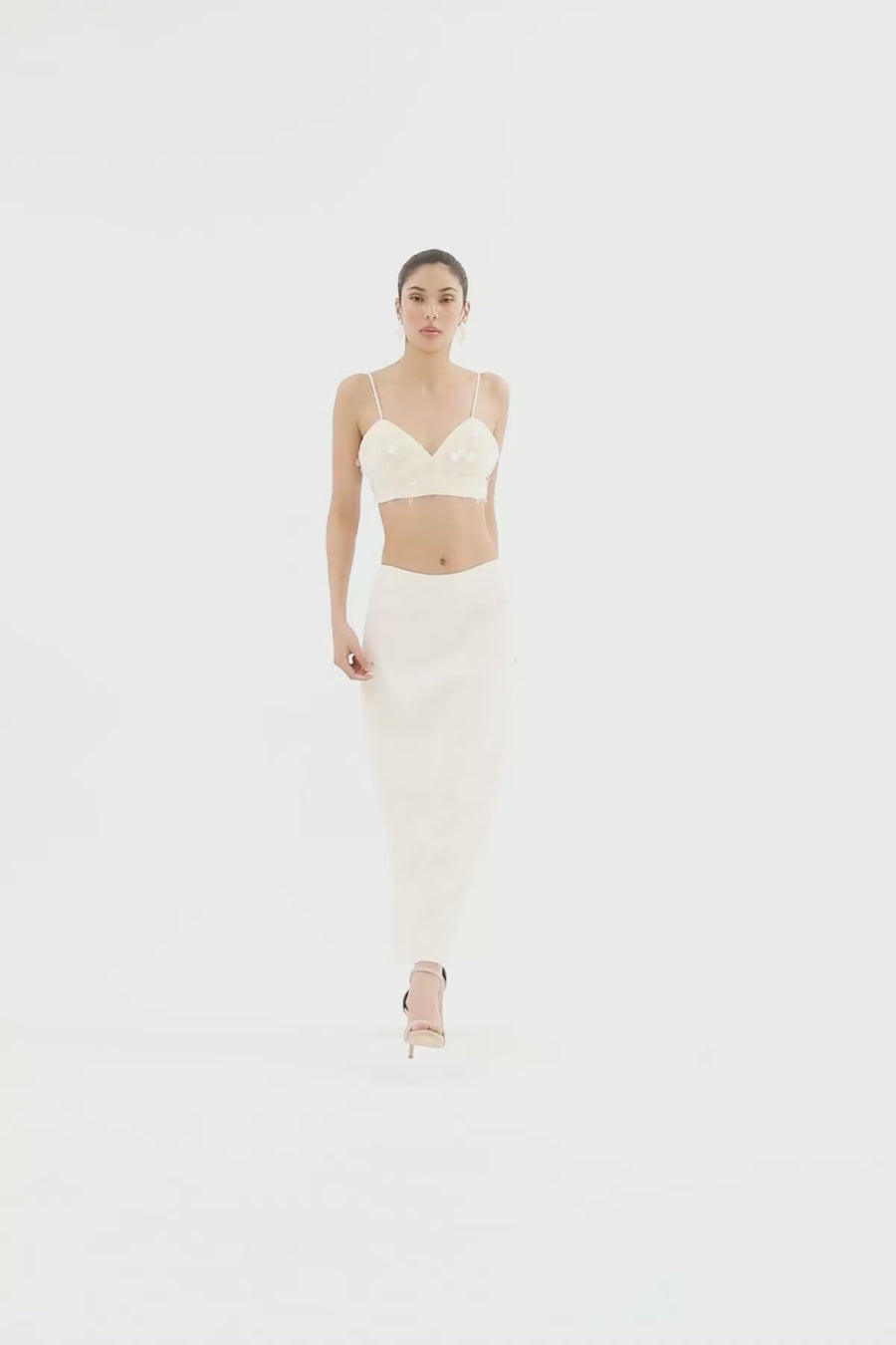 Ecru Sequin-Detail Midi Skirt