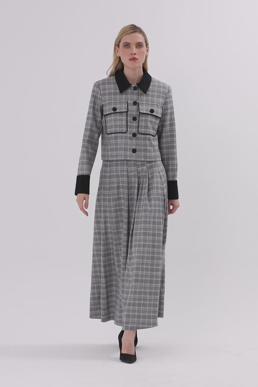 Grey Plaid-Patterned Co-Ord Set