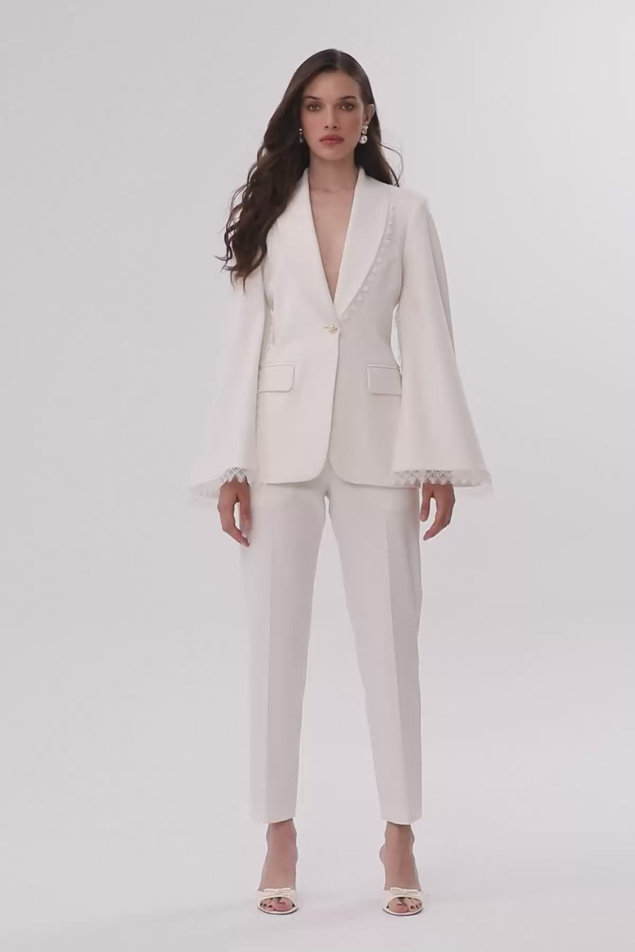 White Lace Sleeve Jacket Pants Set