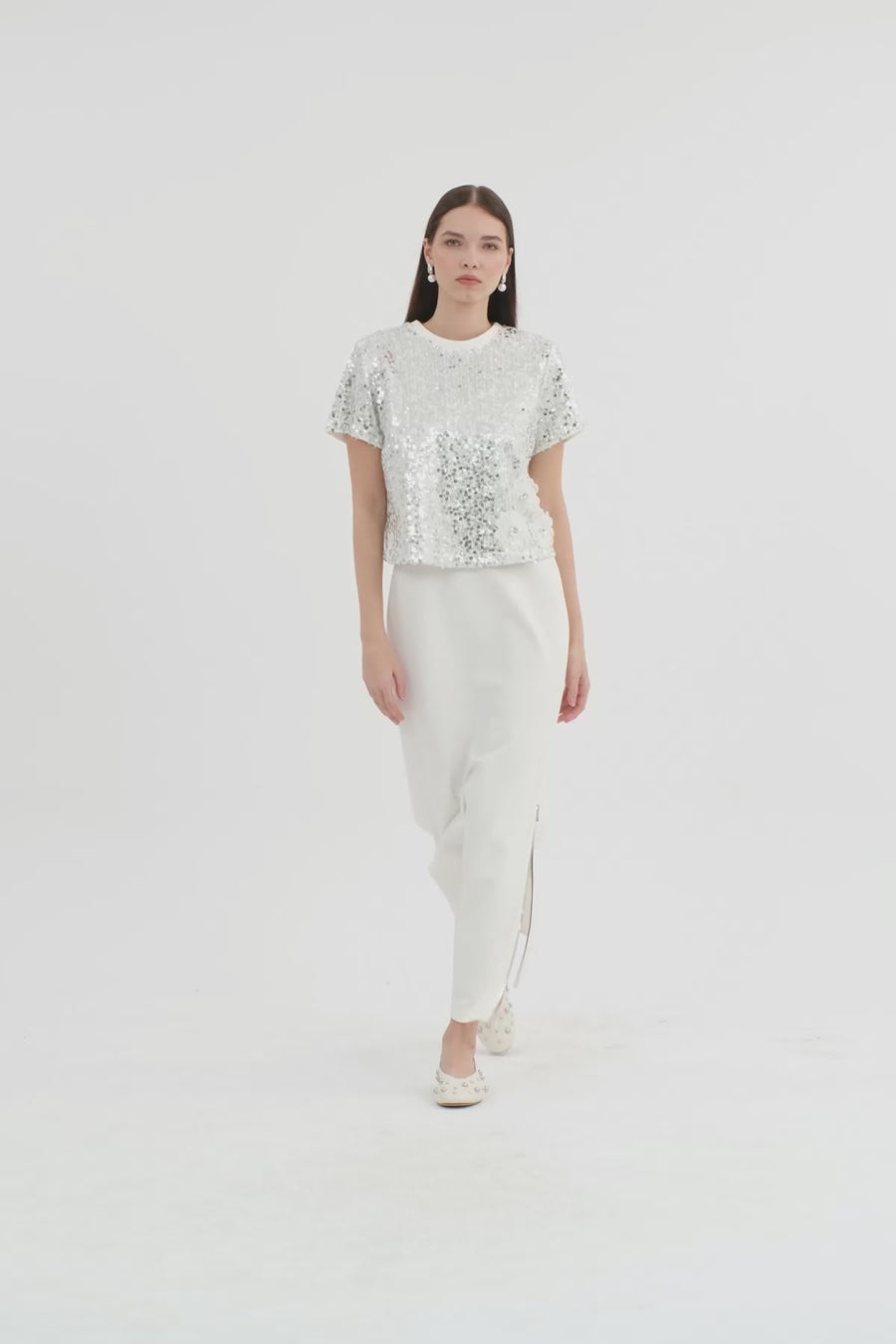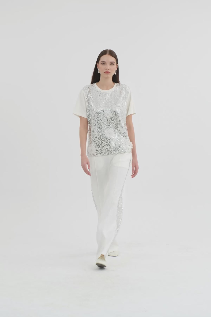 Ecru Stripe-Detail Sleeve Sweatshirt