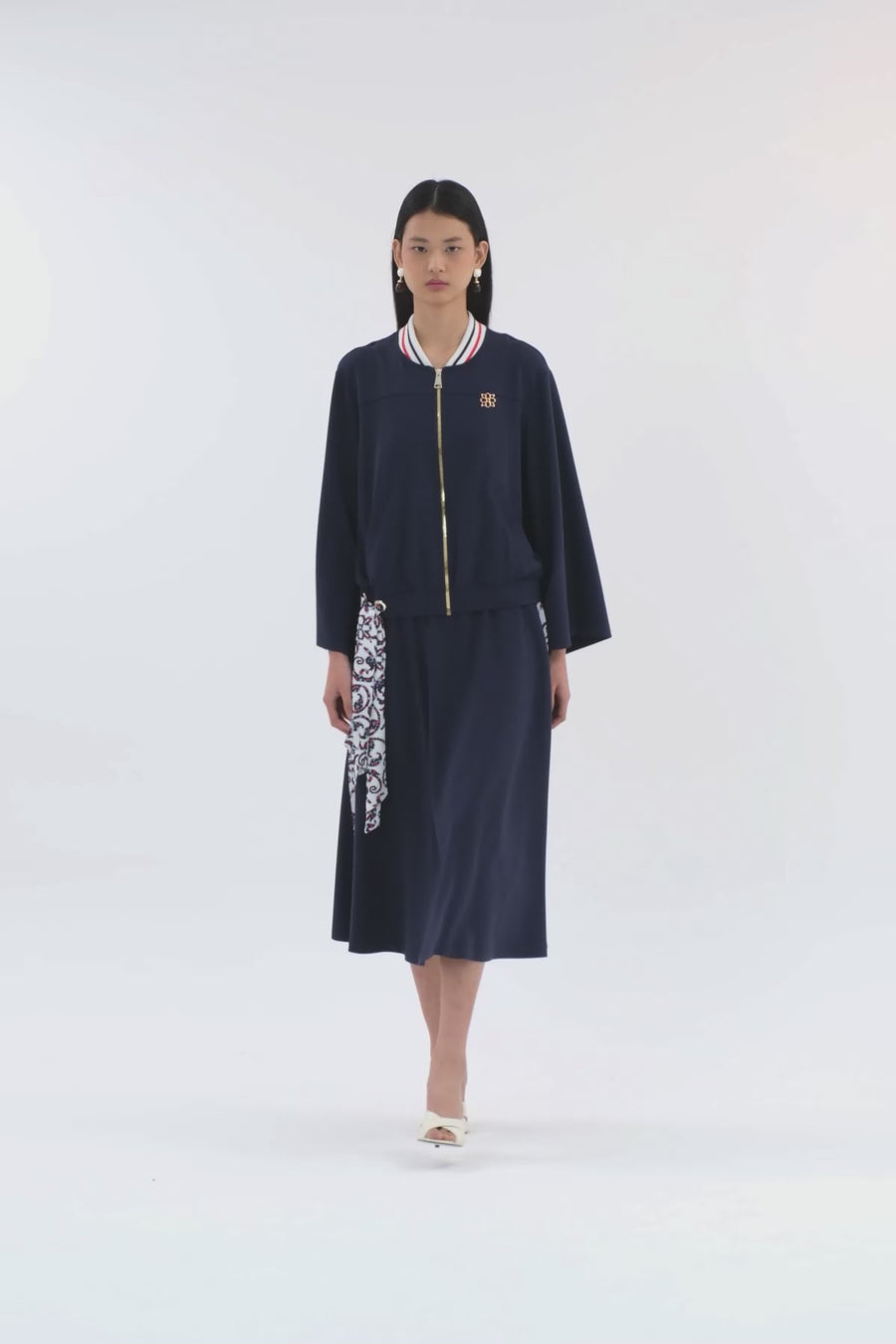 Dark Navy Batwing Sleeve Jacket and Skirt Sweatshirt Set