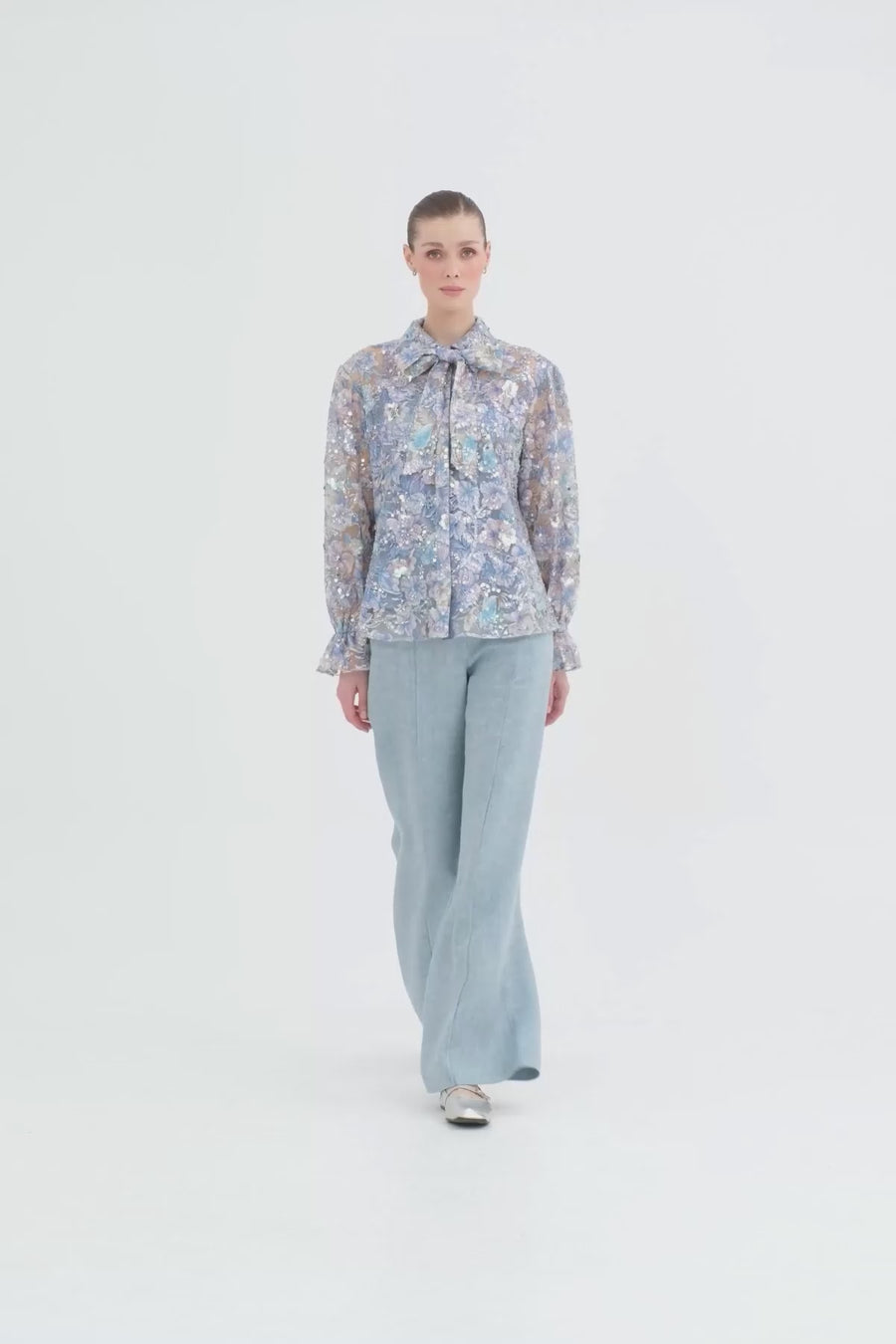 Blue Embroidered Sequin Shirt