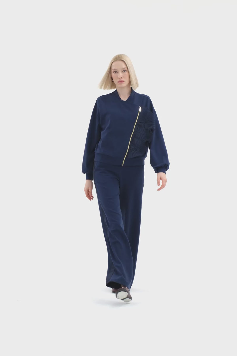 Blue Sweatshirt Set with Blouse and Pants