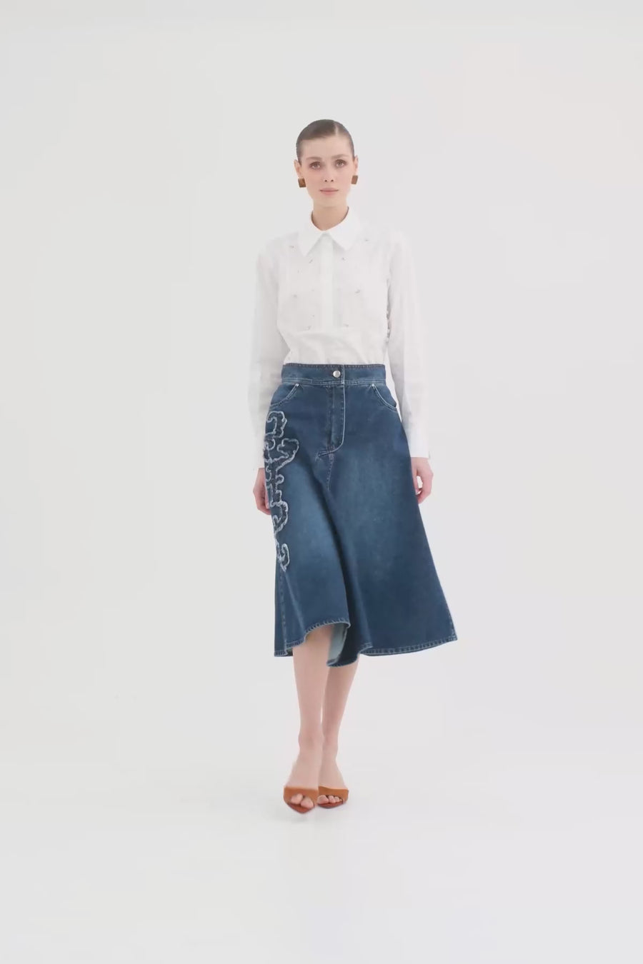 Blue Asymmetric Embroidered Denim