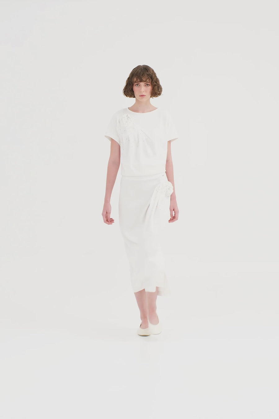 Ecru Rose Embroidered Midi Skirt