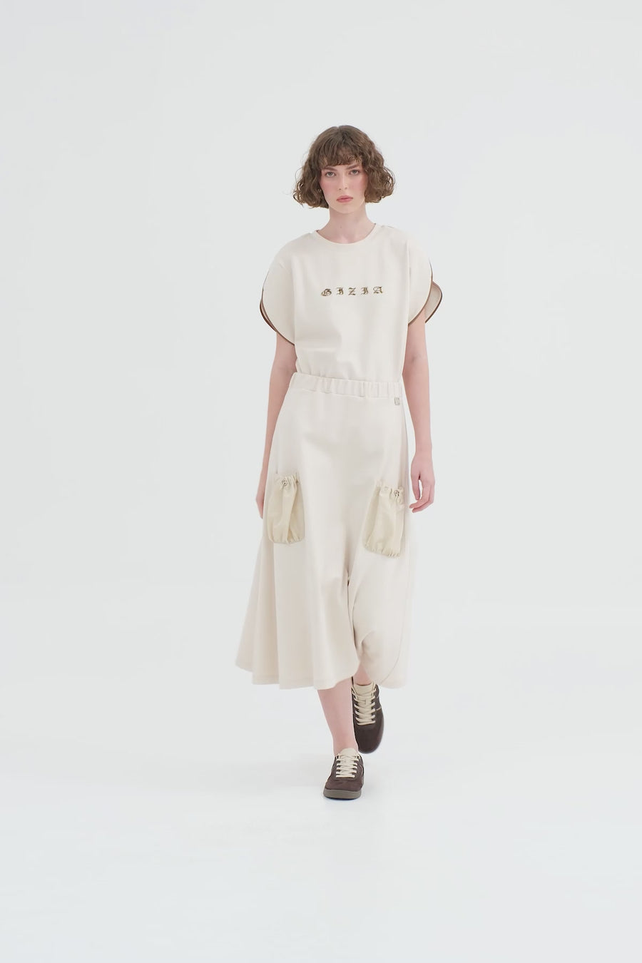 Beıge Balloon Silhouette Pocket Skirt
