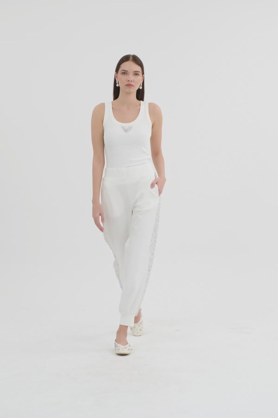 Ecru Sequin Cuff Gathered Joggers
