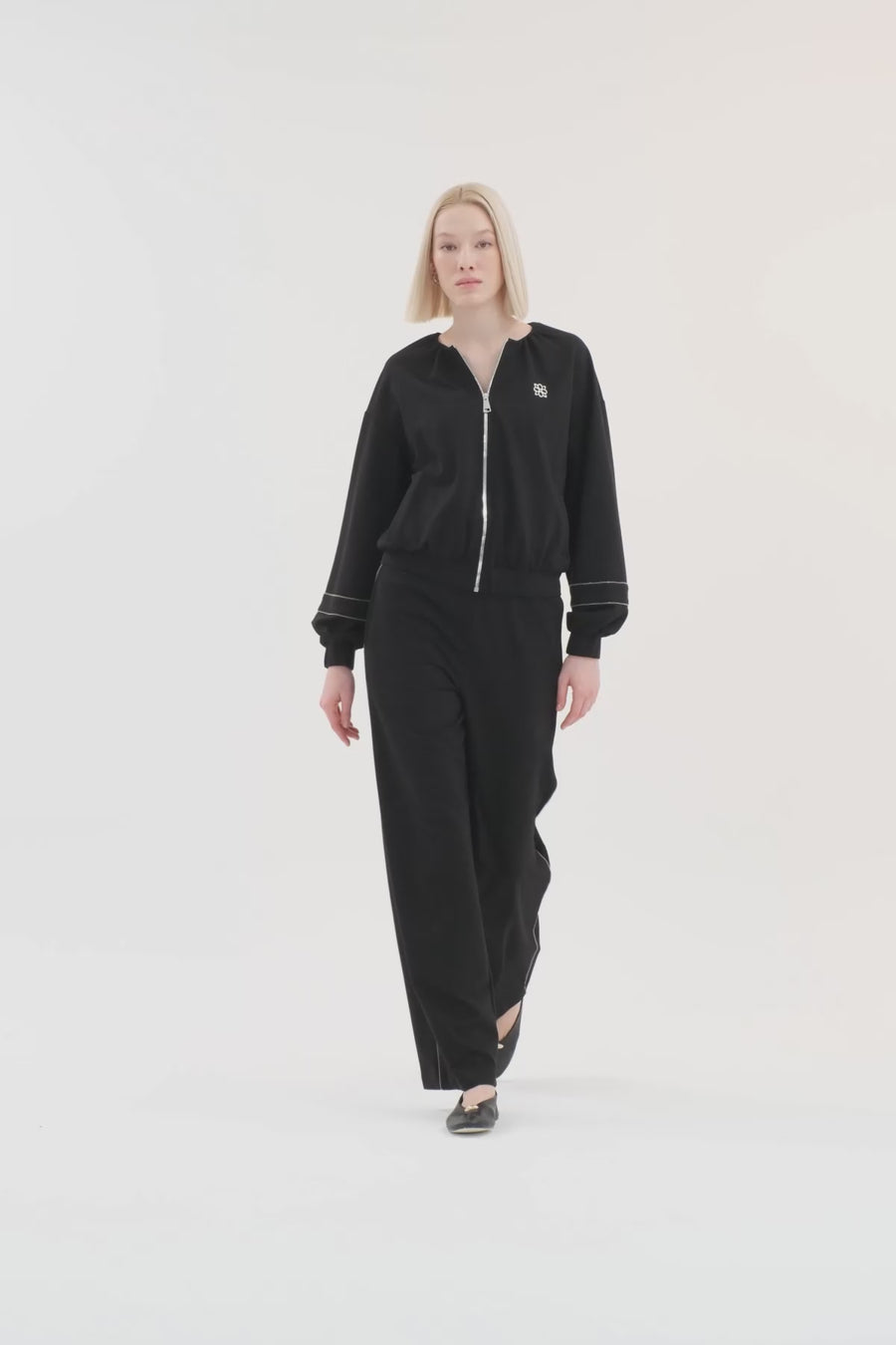 Black Stripe Detail Sweat Set