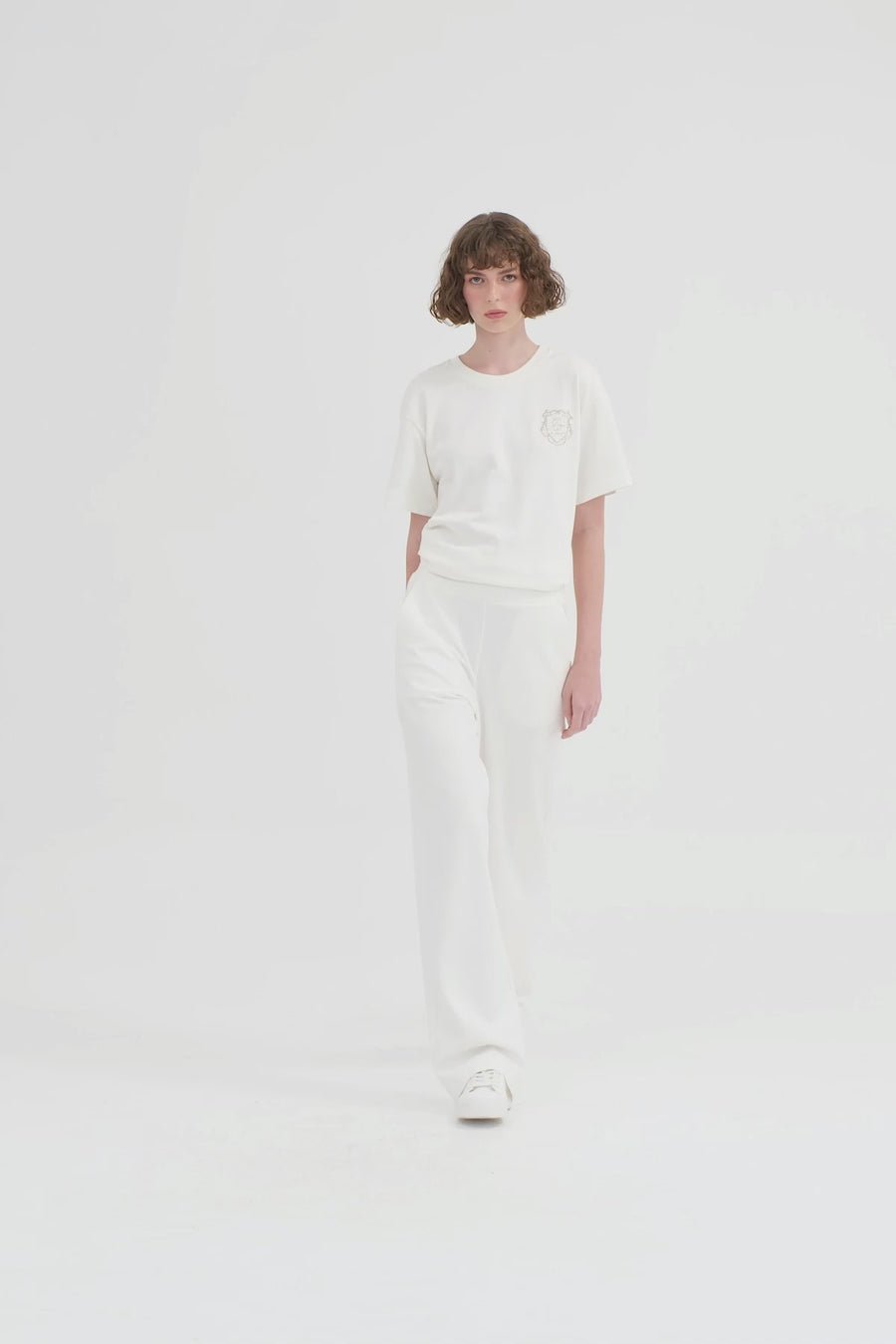 Ecru Embroidered Elastic Waist Sweatpants