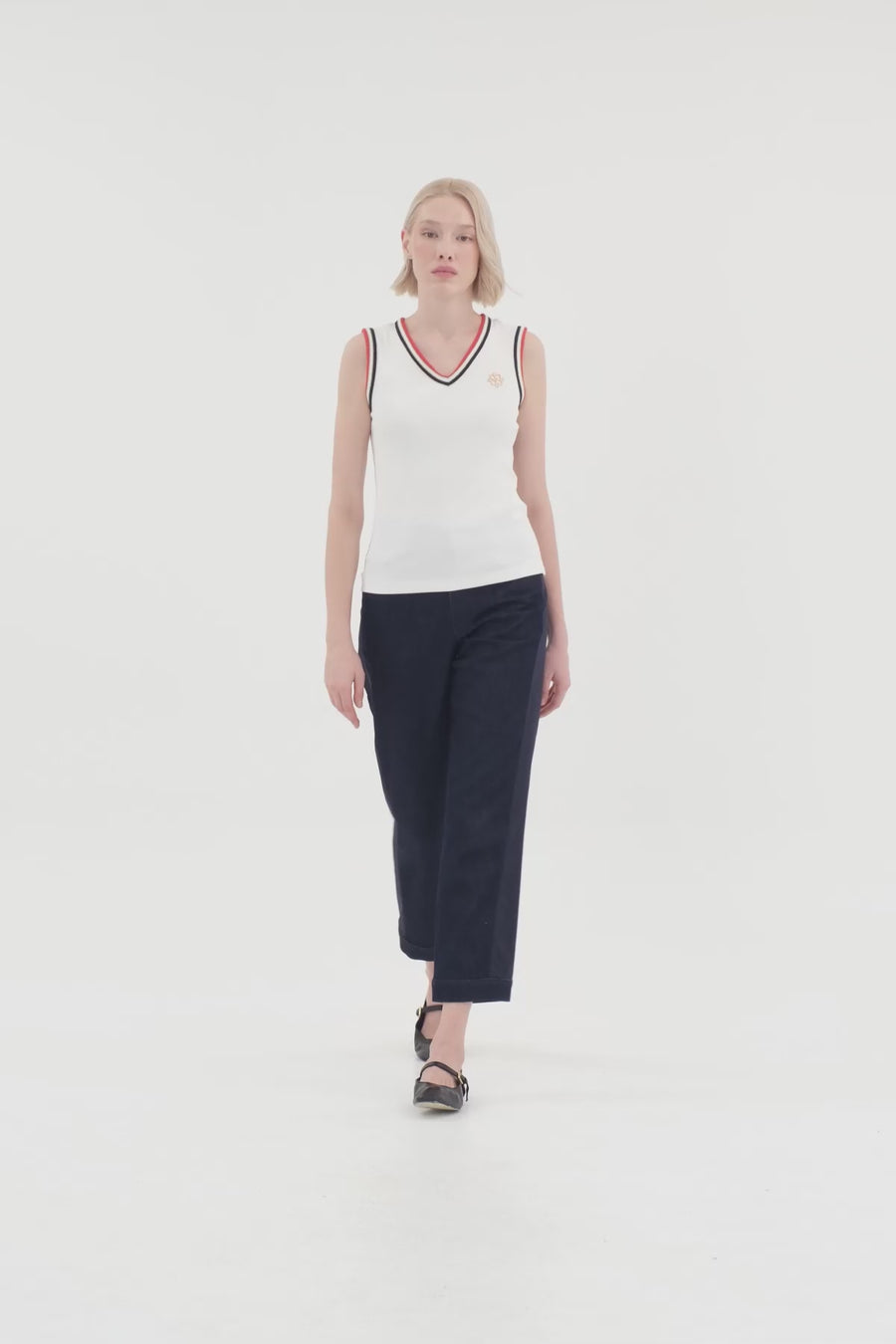 Beige Embroidered Detail Tank Top