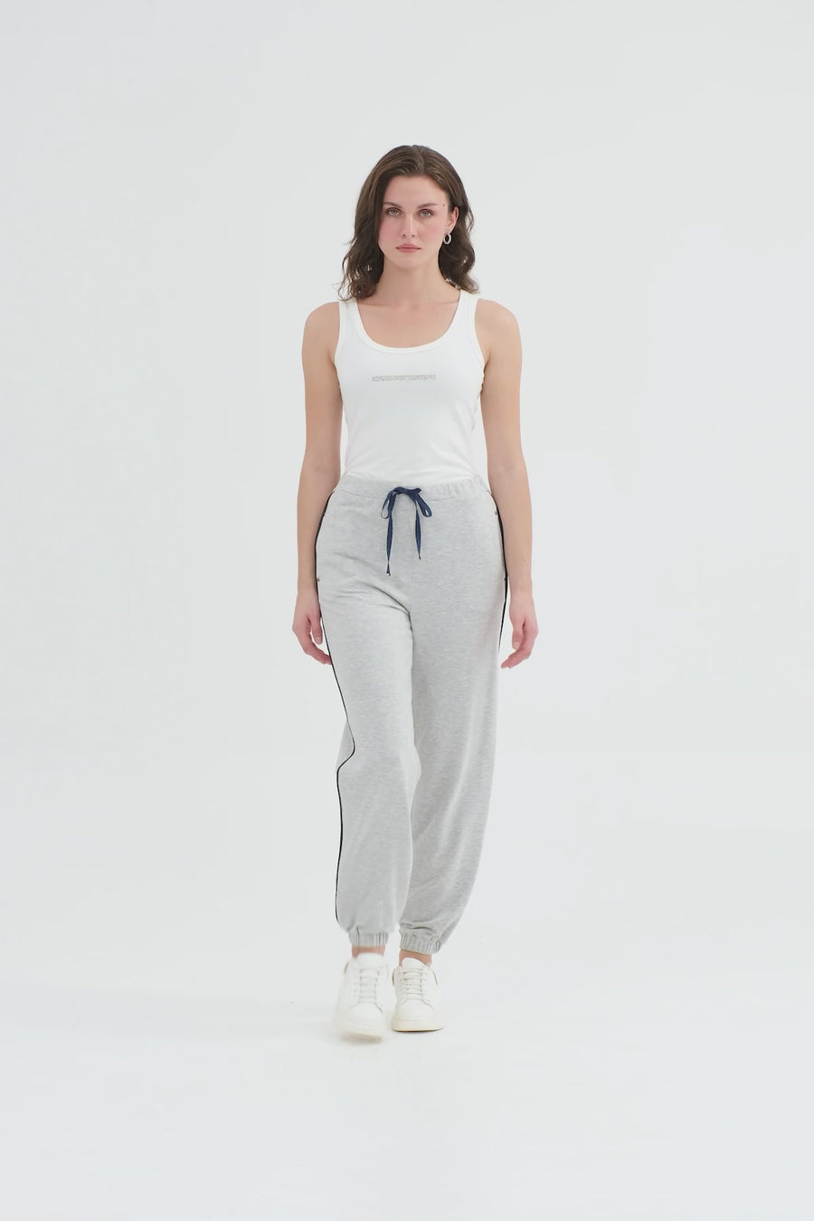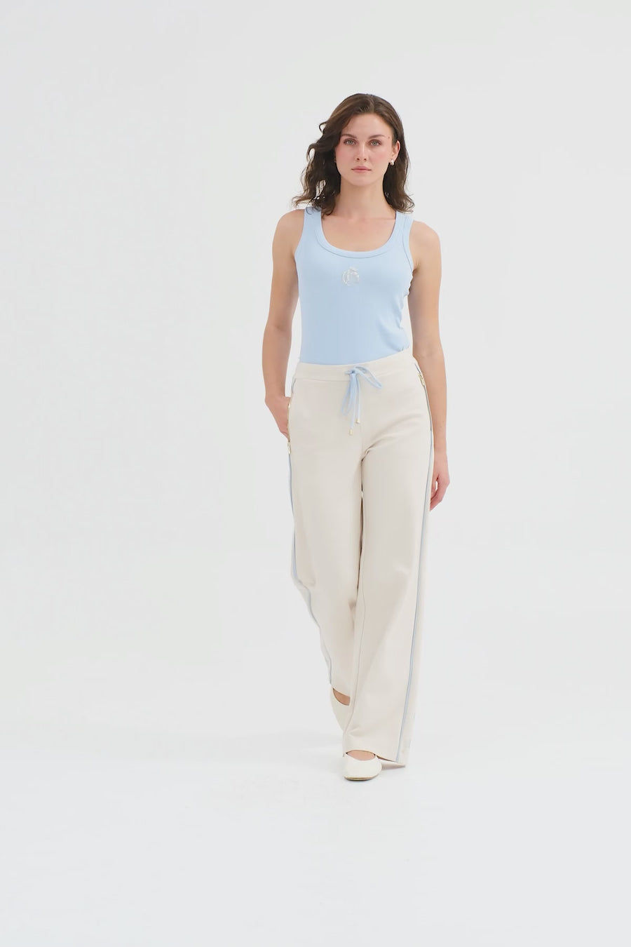 Beige Side Embroidered Tie-Waist Sweatpants