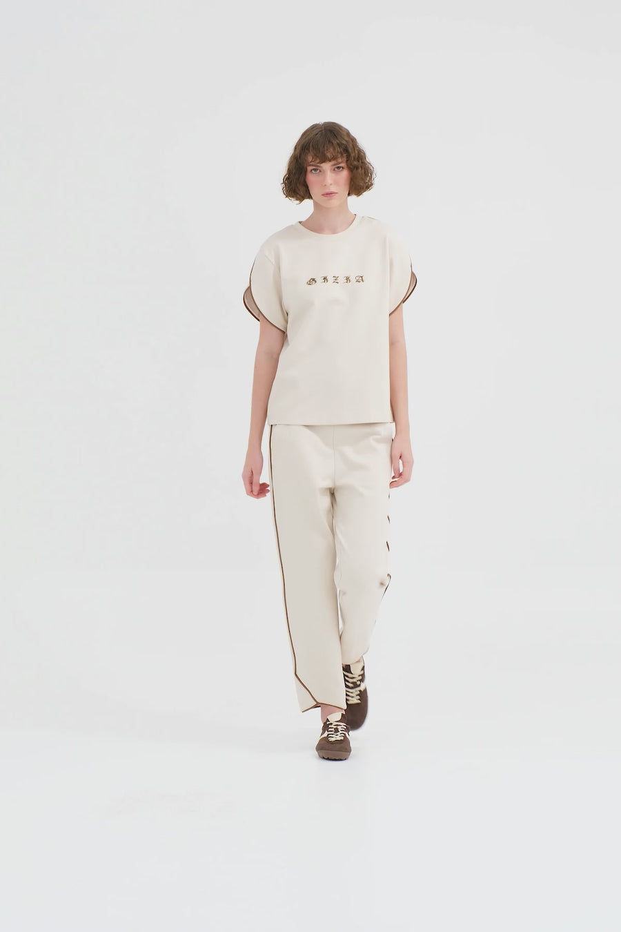 Beige Side Embroidered Detail Sweatpants