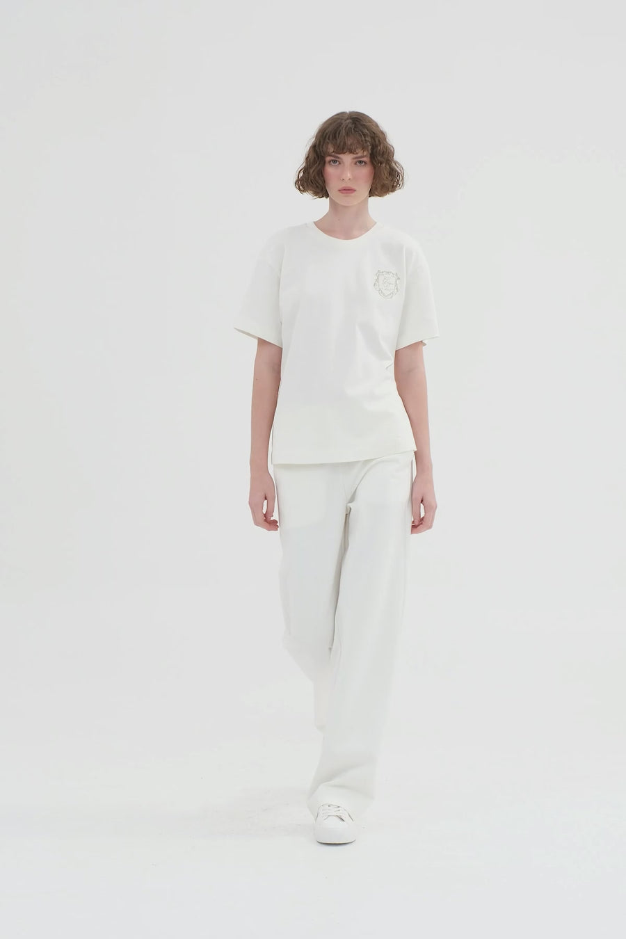 Ecru Embroidered and Crystal Appliqué T-Shirt