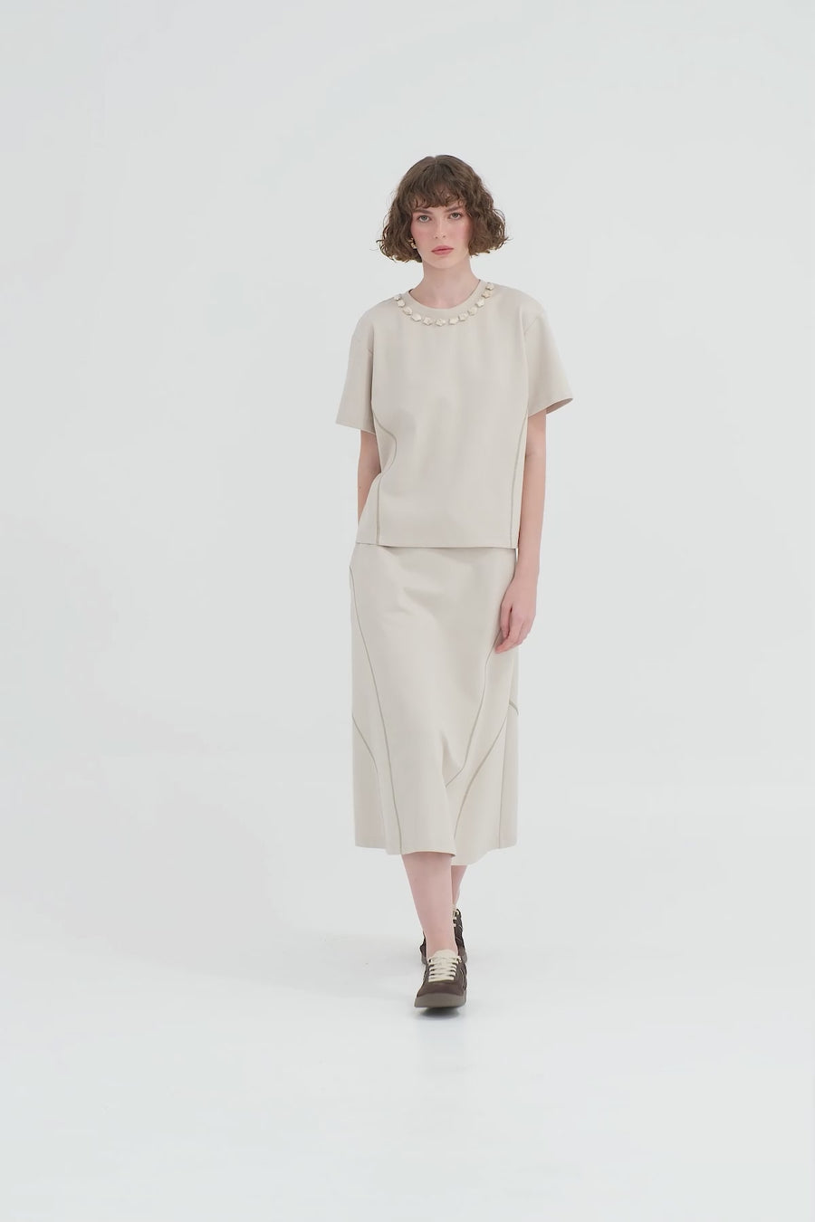 Beige Modern A-Line Midi Skirt