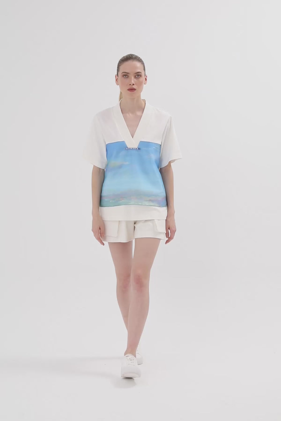 Ecru Blouse with Asymmetrical Hem