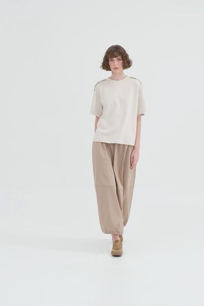 Beige Beaded Embroidered T-Shirt